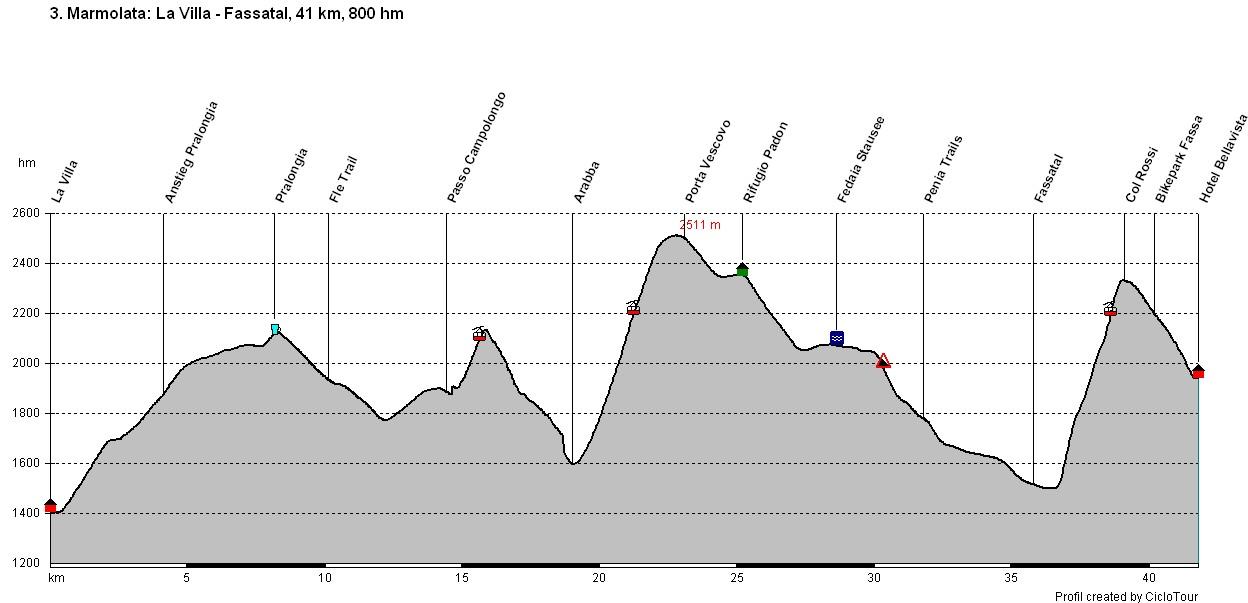 E-MTB Transalp Marmolata 3. Etappe - 41 Kilometer - 800 Höhenmeter von La Villa ins Fassatal