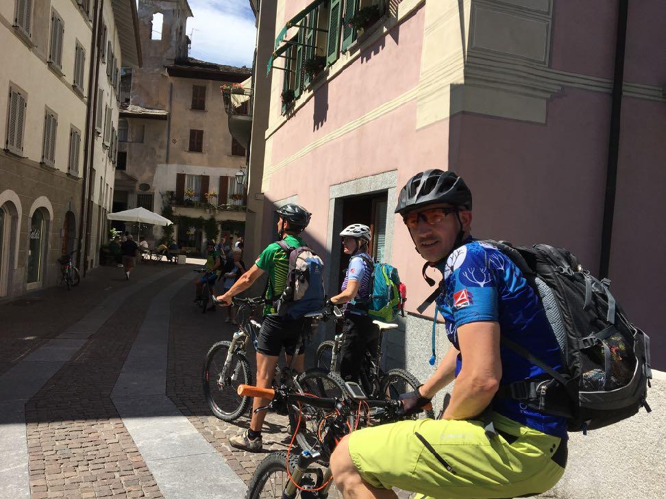 plötzlich schroff und wild. Vorbei an einem Wasserfall, über kleine Brücken erreichen wir die Grenze. Italienischer Lebensstil hüllt uns ein. So ist nach der Mittagsrast in einer urigen Grotte als erstes ein Stopp in der ersten italienischen Eisdiele angesagt. Der Comer See rückt immer näher. Zum Glück haben die Italiener hier schöne Radwege gebaut. So können wir selbst die letzten Meter völlig ohne Verkehr genießen. Im Abendlicht erreichen wir das mediterrane Klima des Comer Sees. Wir haben es geschafft! Unser Hotel liegt im verkehrsberuhigten Kern von Colico direkt am See. Eine nette Bar zum Feiern ist schnell gefunden. Wir genießen ein letztes gemeinsames Abendessen am See.