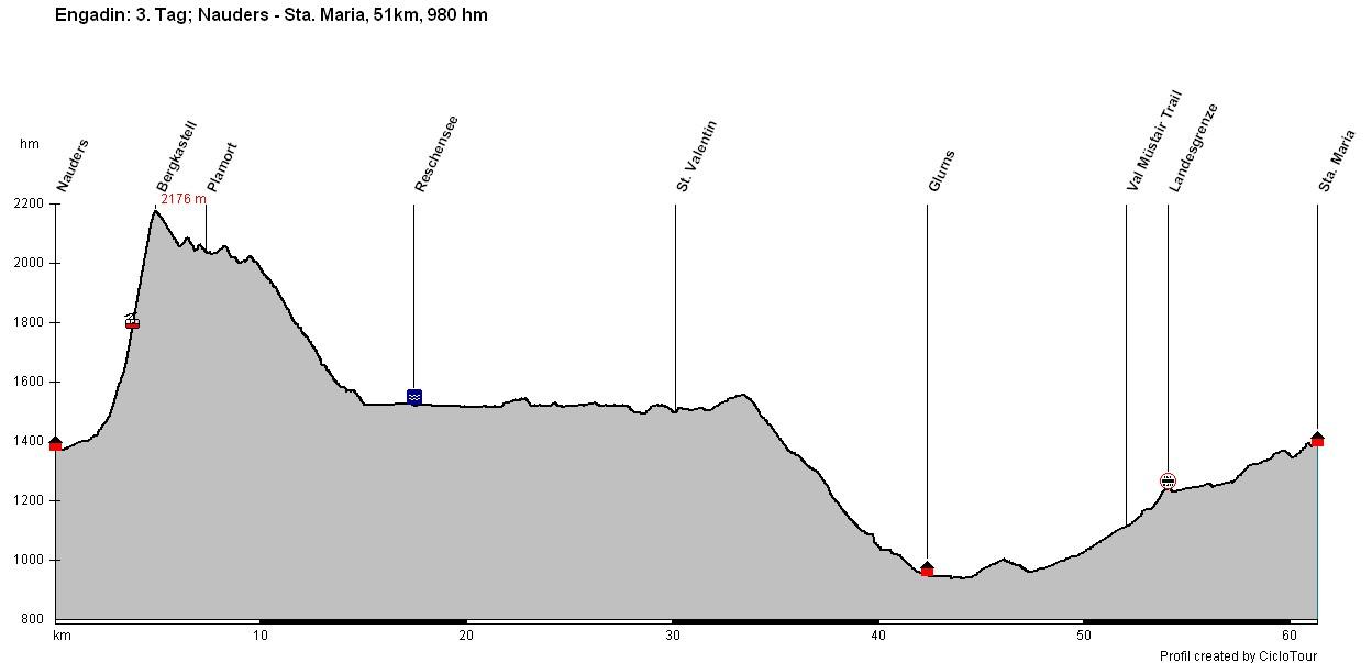 Transalp Engadin 3. Etappe - 51 Kilometer - 980 Höhenmeter von Nauders nach Sta. Maria