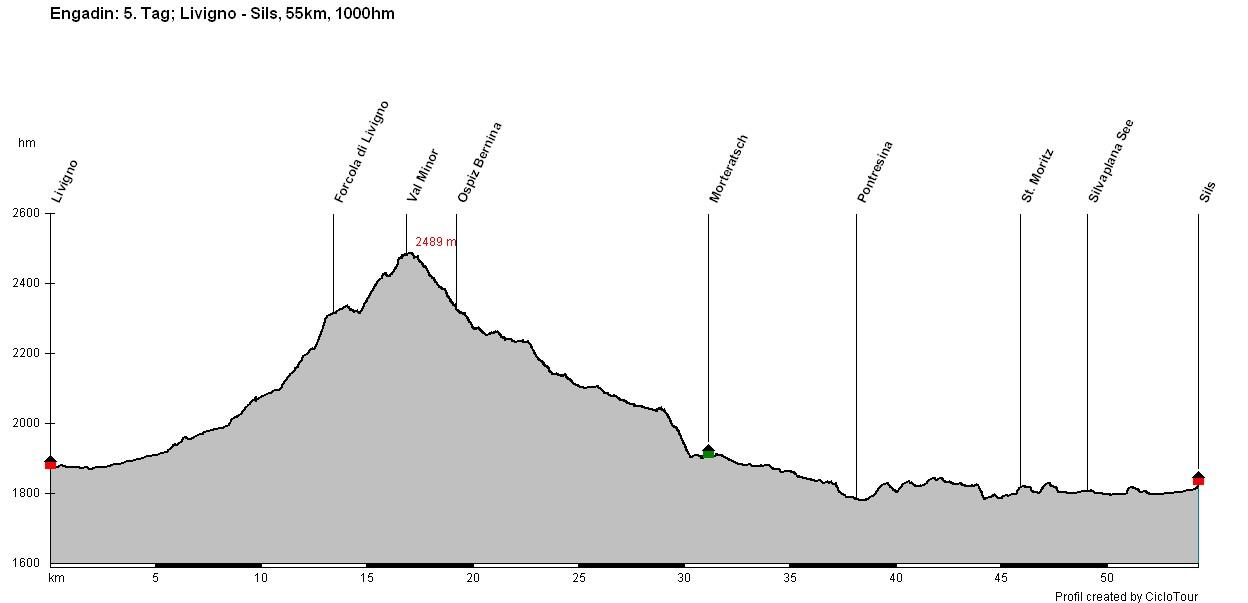 Transalp Engadin 5. Etappe - 55 Kilometer - 1000 Höhenmeter von Livigno nach Sils