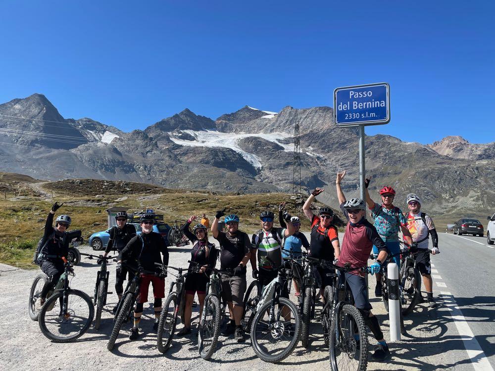 Hochalpine Bikestrecken mit Blick auf die Bernina-Gruppe.
