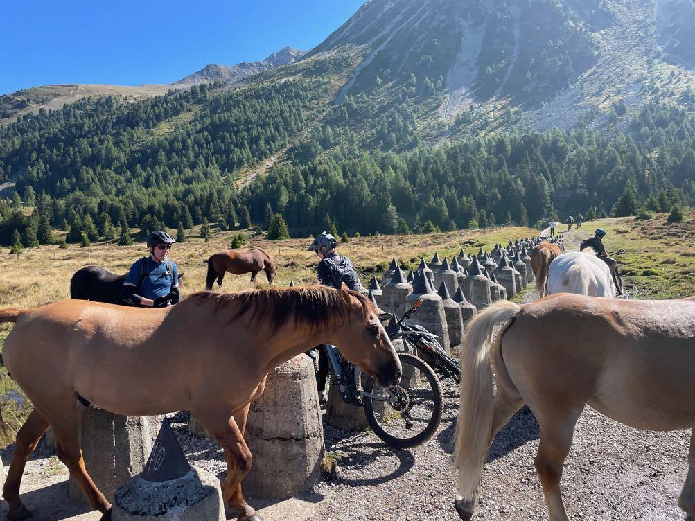 1000 Höhenmeter auf 55 Kilometer können ganz schön anstrengend sein. Dieses Resümee werden viele heute am Ende des Tages ziehen. Dabei erwarten uns den ganzen Tag nur beste Mountainbike-Wege auf unterschiedlichstem Untergrund. Zunächst geht es locker auf einem Asphaltradweg bergauf bis zum Einstieg der Schotterstrecke hoch zur Forcola di Livigno.