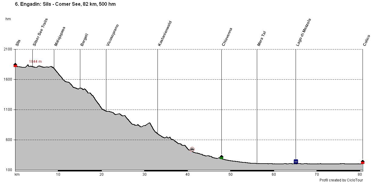 Transalp Engadin 6. Etappe - 82 Kilometer - 500 Höhenmeter von Sils zum Comer See