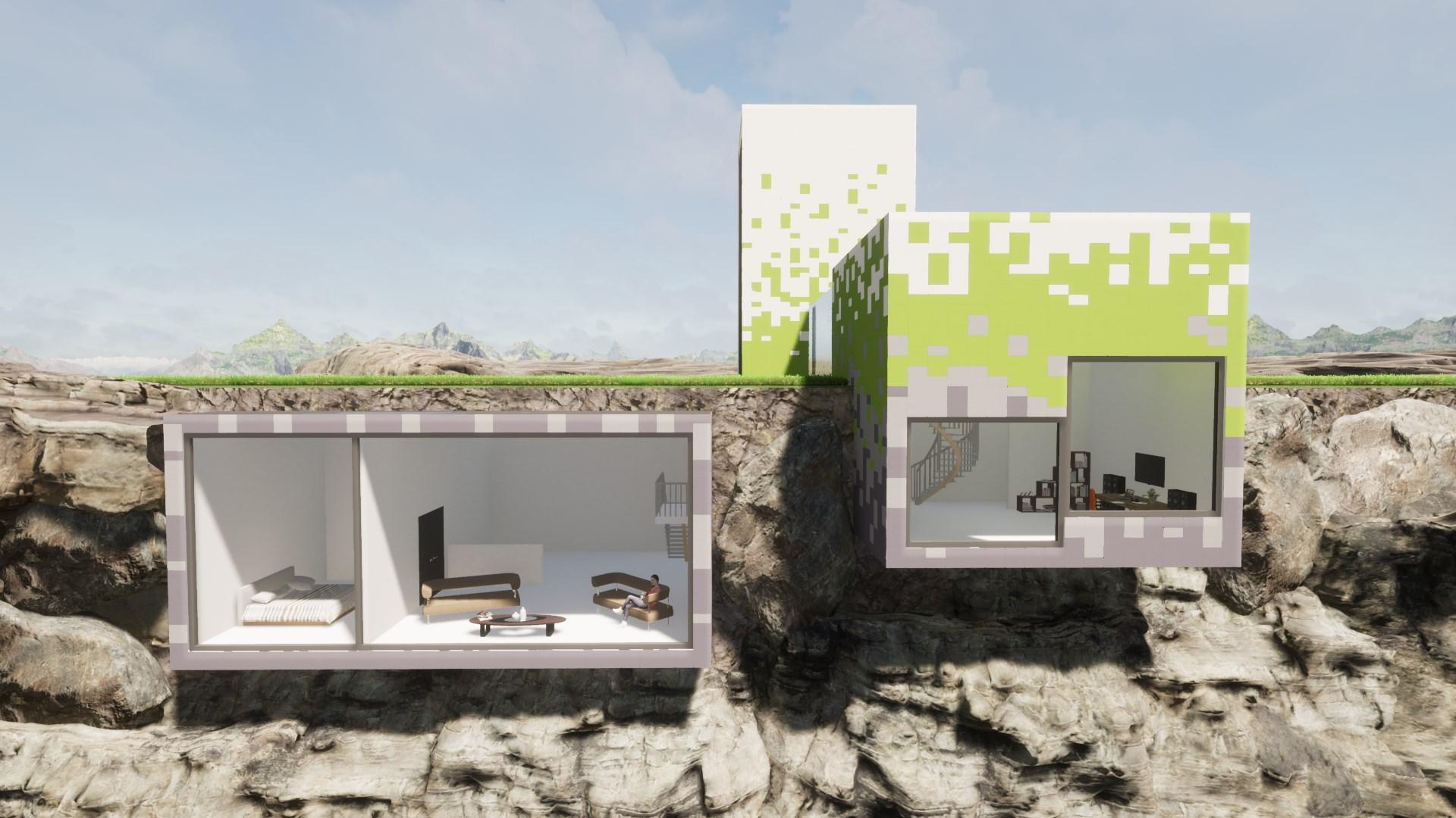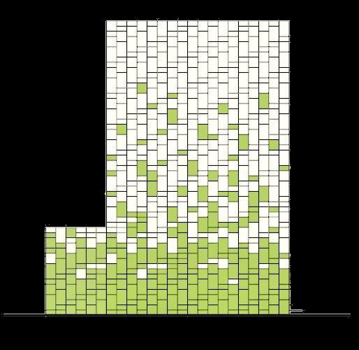 Om het ontwerp thema opgaan in de omgeving te versterken is gebruik gemaakt van een gradiënt over het hele gebouw van stenen plaat materiaal. Door te reflecteren op de klif zullen de platen overlopen in zowel kleur als textuur.
