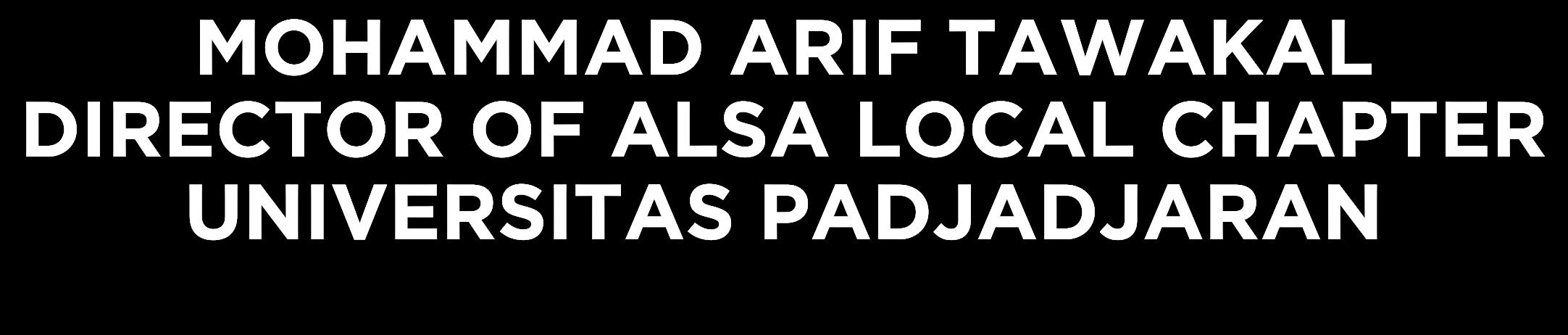 I aspire wonderful pieces like this could continually be produced and actasanentertaining,educativeyetinformativesourceofinformation that can be accessed publicly. Moreover, I would like to give my highest gratitude and appreciation to everyone involved in producing this Magazine. I sincerely hope that ALSA Local Chapter Universitas Padjdjaranmaycreatemoreastonishingproje apurposetodeveloptheirmembersandthe well. pleaseenjoythisexquisitemag