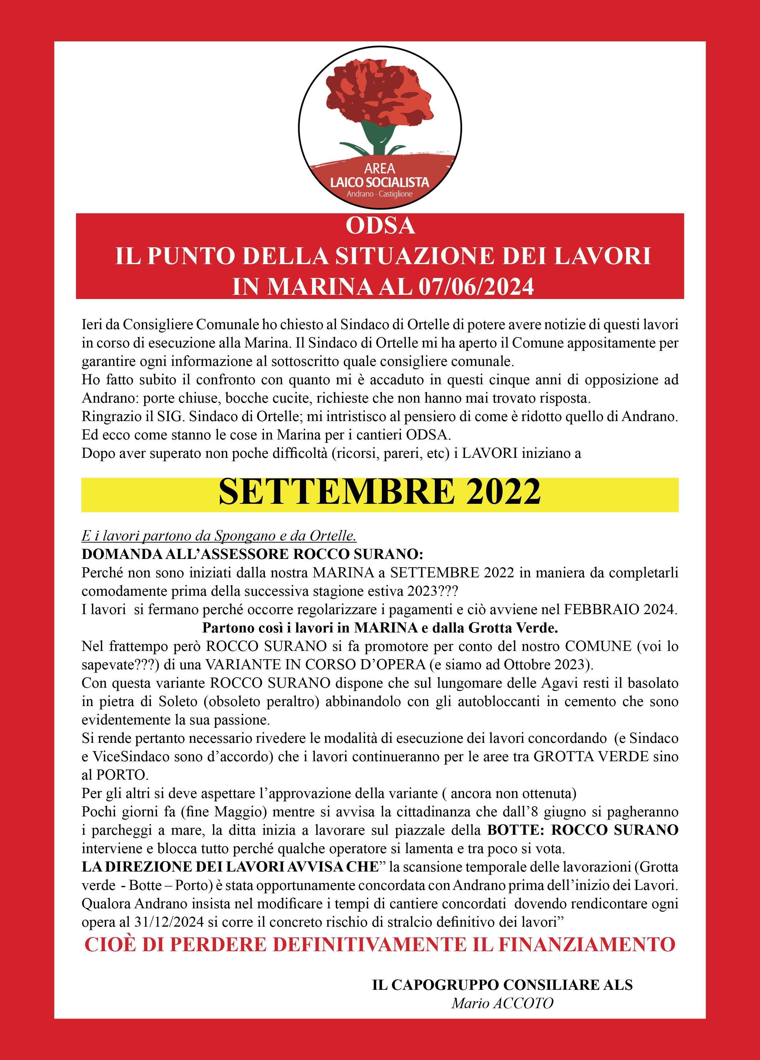 Marina” non dovrebbero essere solo una promessa da campagna elettorale, ma una realtà quotidiana da gestire e valorizzare. È urgente che l’amministrazione locale prenda coscienza di questa grave situazione e intervenga concretamente e tempestivamente per ridare al nostro territorio il decoro e la vivibilità che merita.