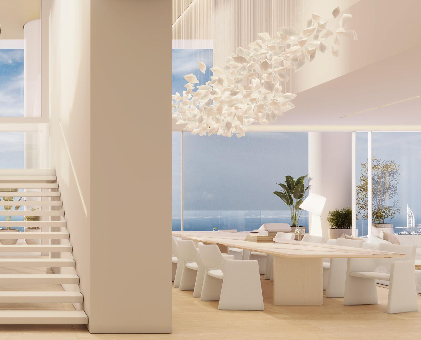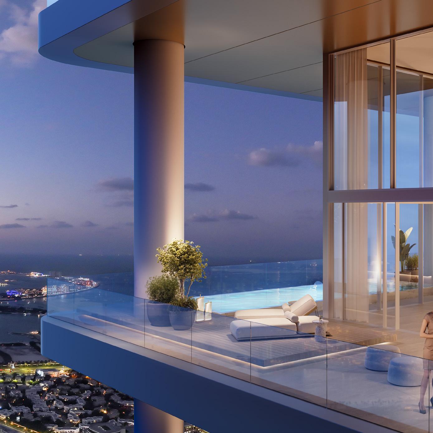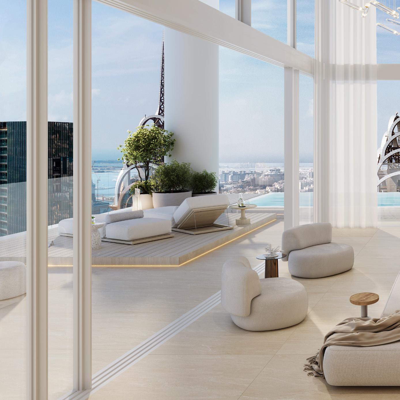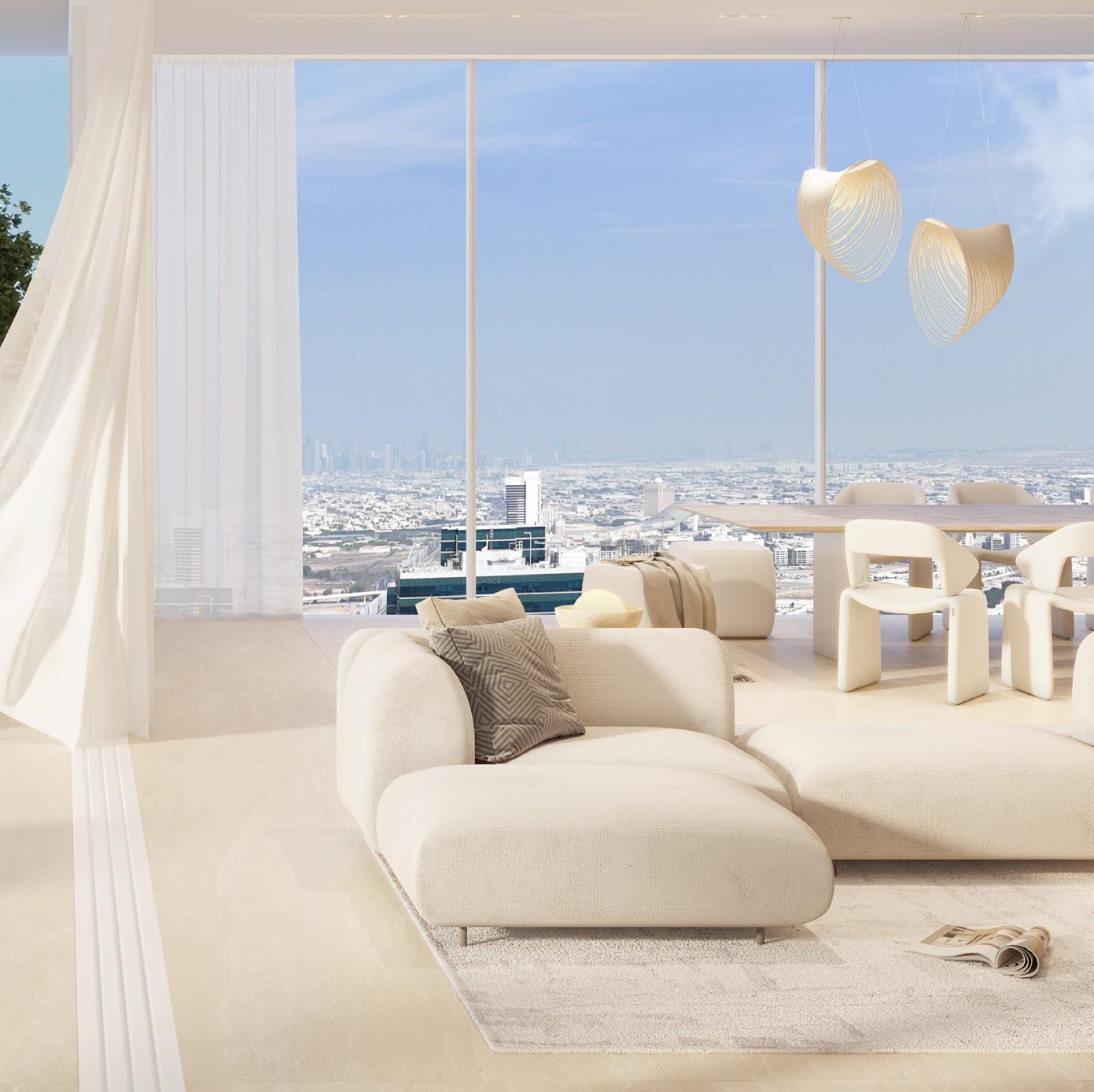 Experience the epitome of sky-high living in the Horizon Villas, where breathtaking views of Dubai’s iconic skyline and the Emirates Golf Club create an ever-changing backdrop to daily life. These sprawling residences feature private elevator access and fullwidth sky gardens and terraces, offering a true villain-the-sky experience. Each suite has been masterfully crafted to maximise both space and sophistication, creating homes that are as impressive as they are welcoming.