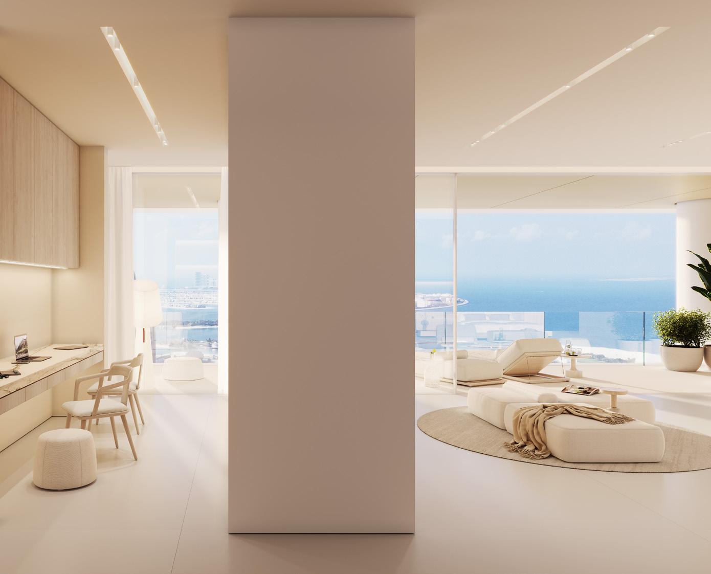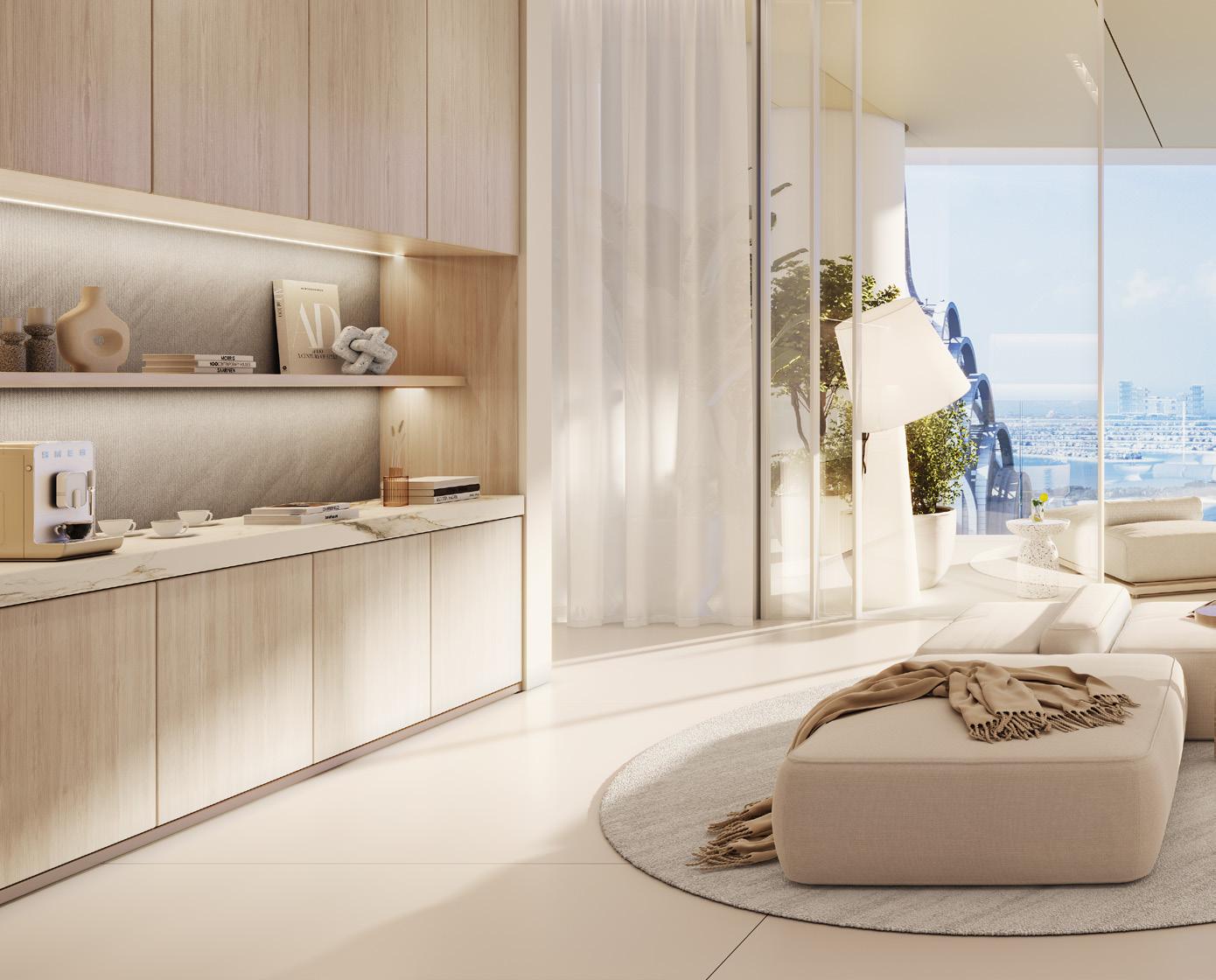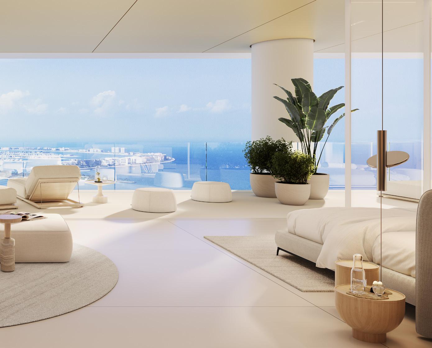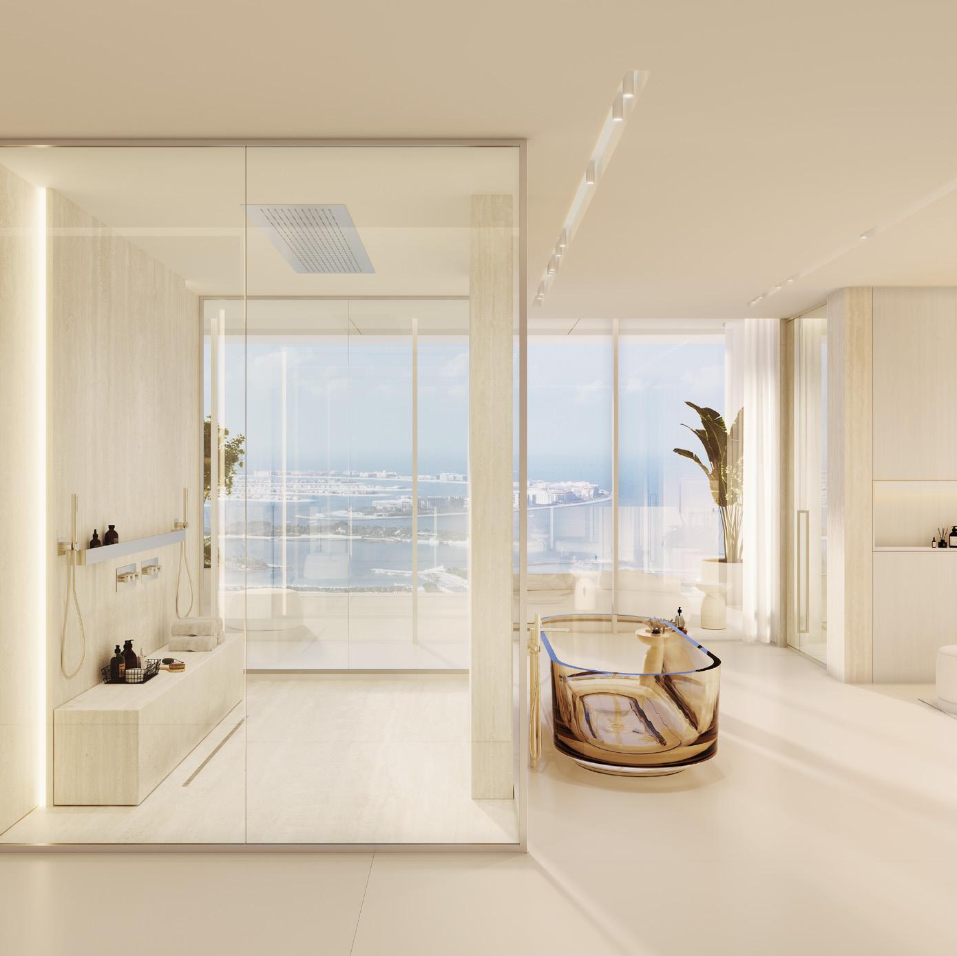 Experience the epitome of sky-high living in the Horizon Villas, where breathtaking views of Dubai’s iconic skyline and the Emirates Golf Club create an ever-changing backdrop to daily life. These sprawling residences feature private elevator access and fullwidth sky gardens and terraces, offering a true villain-the-sky experience. Each suite has been masterfully crafted to maximise both space and sophistication, creating homes that are as impressive as they are welcoming.