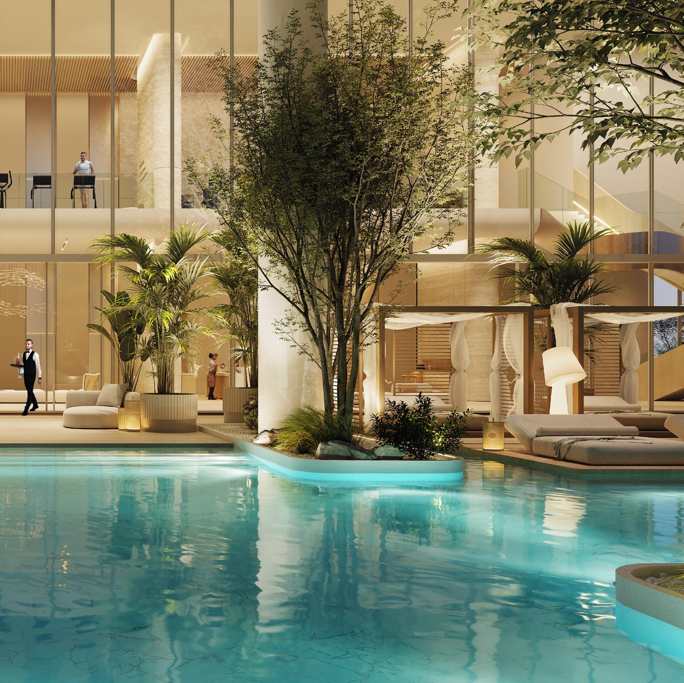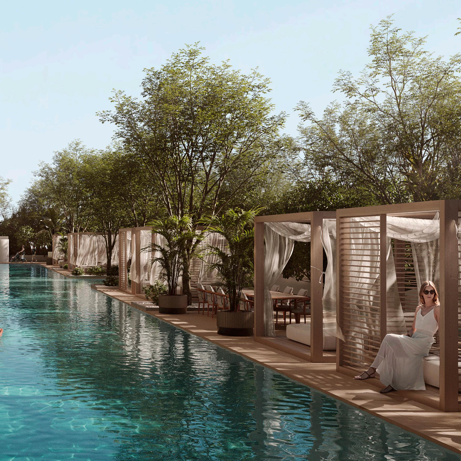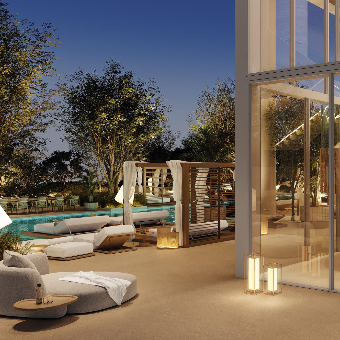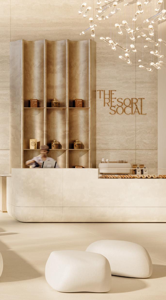 The Resort Social welcomes you to a realm of refined tranquility, where soft ambient lighting sets the mood. Boasting a breathtaking 60-meter lagoon-inspired pool, encircled by plush cabanas and loungers, residents are invited to immerse themselves in a vibrant yet serene oasis. From the tranquil atmosphere of the spa to the state-of-the-art health club and exclusive owners’ cinema, every moment offers an unforgettable lifestyle experience.