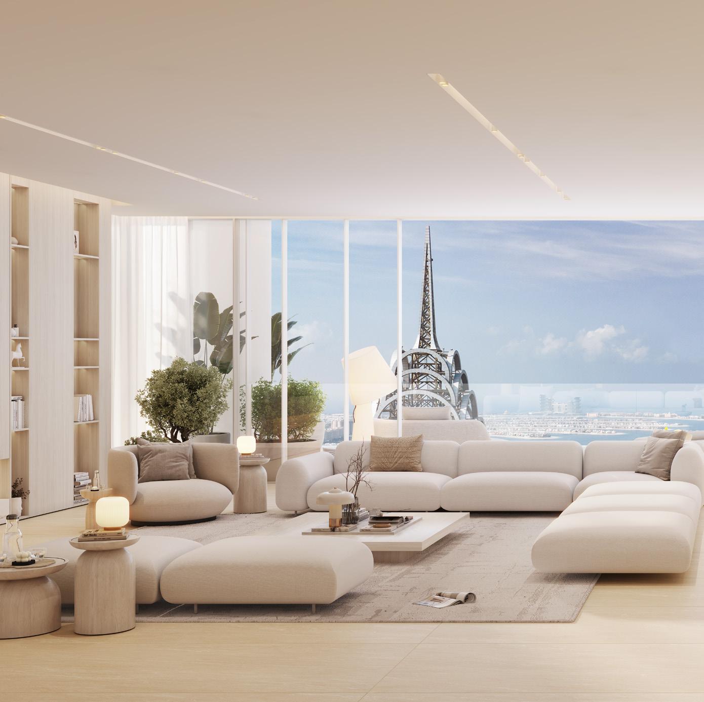 The Serenity Villas embody the essence of harmonious living, where every detail has been carefully considered to create an atmosphere of understated luxury. Sweeping sky gardens frame spectacular views of Palm Jumeirah, while openplan living spaces flow seamlessly from one area to the next. These residences offer an elevated living experience where sophisticated design meets practical elegance.