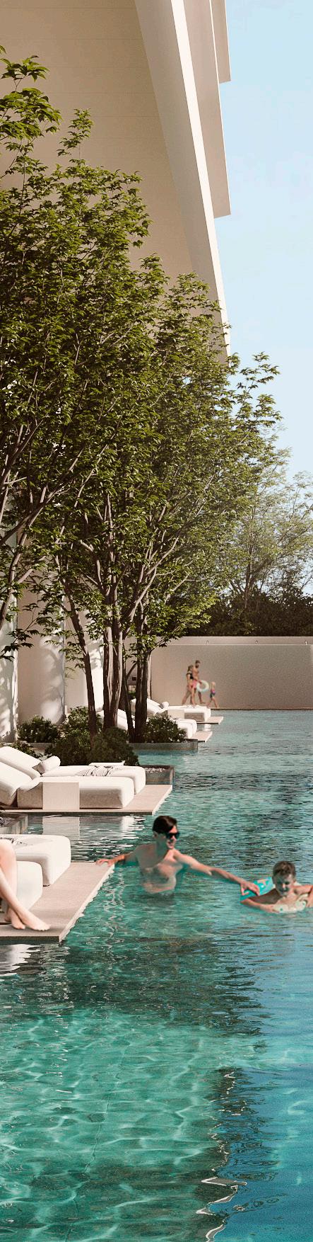 The beautifully crafted 60-meter lagoon-inspired pool offers the perfect balance of an invigorating swim and a serene escape. Surrounded by lush greenery and thoughtfully designed relaxation zones, it invites residents to unwind in style. This tranquil oasis provides an elevated setting to relax, refresh, and embrace the refined elegance of sky-rise living.