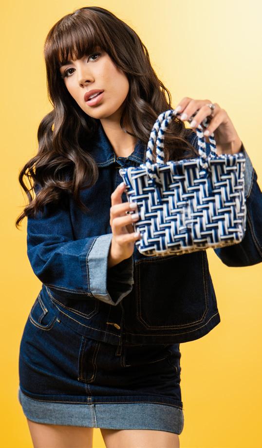 buscaba coherencia entre forma y propósito. Fue allí donde el vínculo con la moda sostenible se volvió tangible: las carteras y charms de Nostalgia toman forma a partir de botellas recicladas, transformadas mediante procesos responsables en piezas de diseño con identidad.