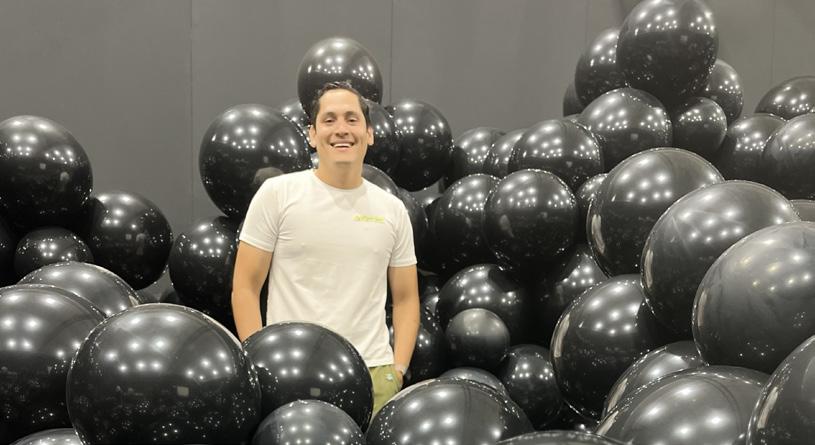 También destaca su participación en el Balloon Museum, una experiencia que lo acercó al circuito internacional del arte en globos: “Mi primer evento grande que tuve, que participé, fue en el Balón Museum… es una sala, una piscina de globos, un techo, es increíble”.