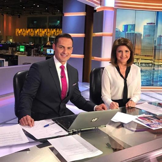 En octubre 2016, con Alina Mayo, presentando el noticiero del Canal 23 Univision.