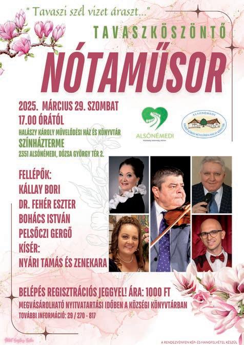 Szerkesztőbizottság: Jobbágy Ilona, Kovács Róbert, Lajer László Szerkesztőségi titkár: Nagyné Molnár Erzsébet Elérhetőség, hirdetésfelvétel: Alsónémedi Polgármesteri Hivatala, 2351 Alsónémedi, Fő út 66. Nagyné Molnár Erzsébet Tel.: 06-29/337-101/11 e-mail: alsonemedi@alsonemedi.hu