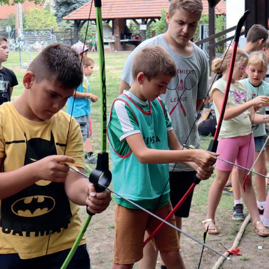 A NYWYG Hagyományőrző Egyesület segítségével ismét betekintést nyertek a gyerekek az íjászat rejtelmeibe. Köszönjük Suplicz Zsoltnak a szerve zést. A bűvésziskolában Lui bűvész még trükköket is mutatott a gyerekeknek. Kirándulni is voltunk min den héten. Nagy élmény volt a Természettudományi Múzeum és a Játékcentrum. A pénteki záróprogram meglepetése is nagy sikert aratott: egy ugráló vár és egy óriás csúszkapálya fogadta a gyerekeket már reggel, ami igazán nagy felüdülést jelentett a forró nyári napokban.
