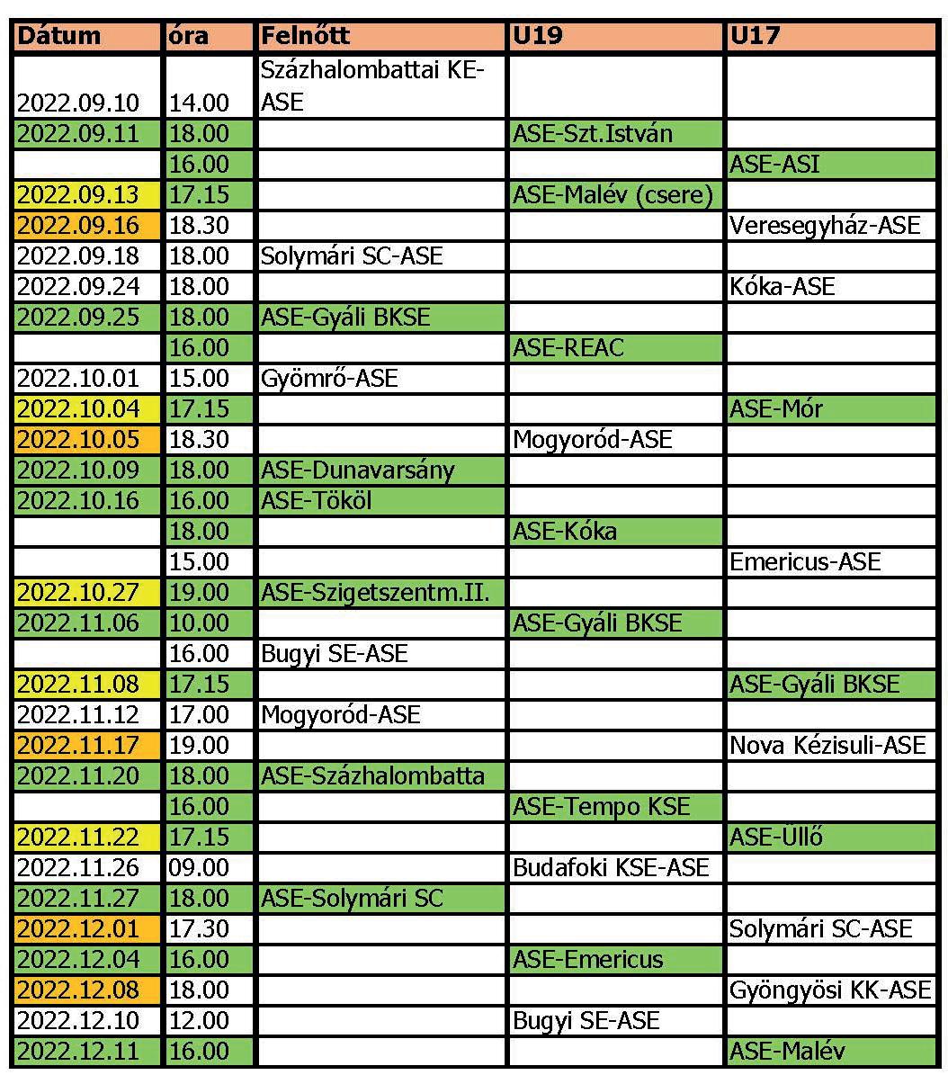 2022.08.28. ASE – Halásztelki FC 5-1 2022.09.04. Újhartyán VSE – ASE 3-0