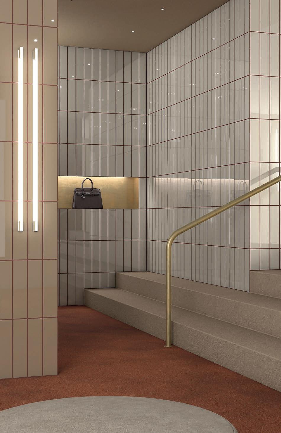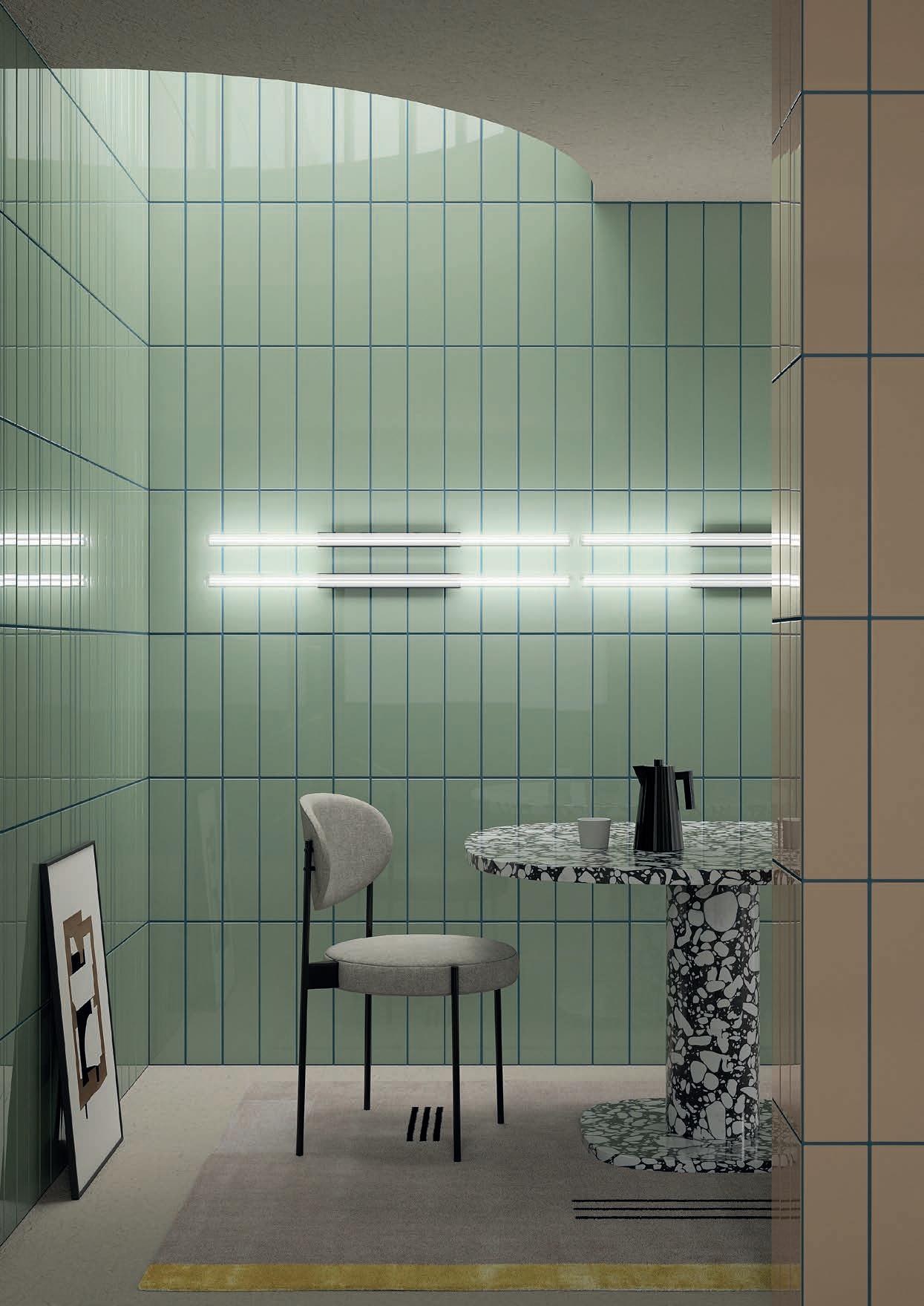 Cromia follows the vision of each interior designer, allowing to create scenic compositions where colour, light and reflections become absolute protagonists. It is perfect when used alone for the realization of large backgrounds or the coating of spaces, where also colour and the size of the grout line become a design feature, or even when combined with other materials or decorative elements.