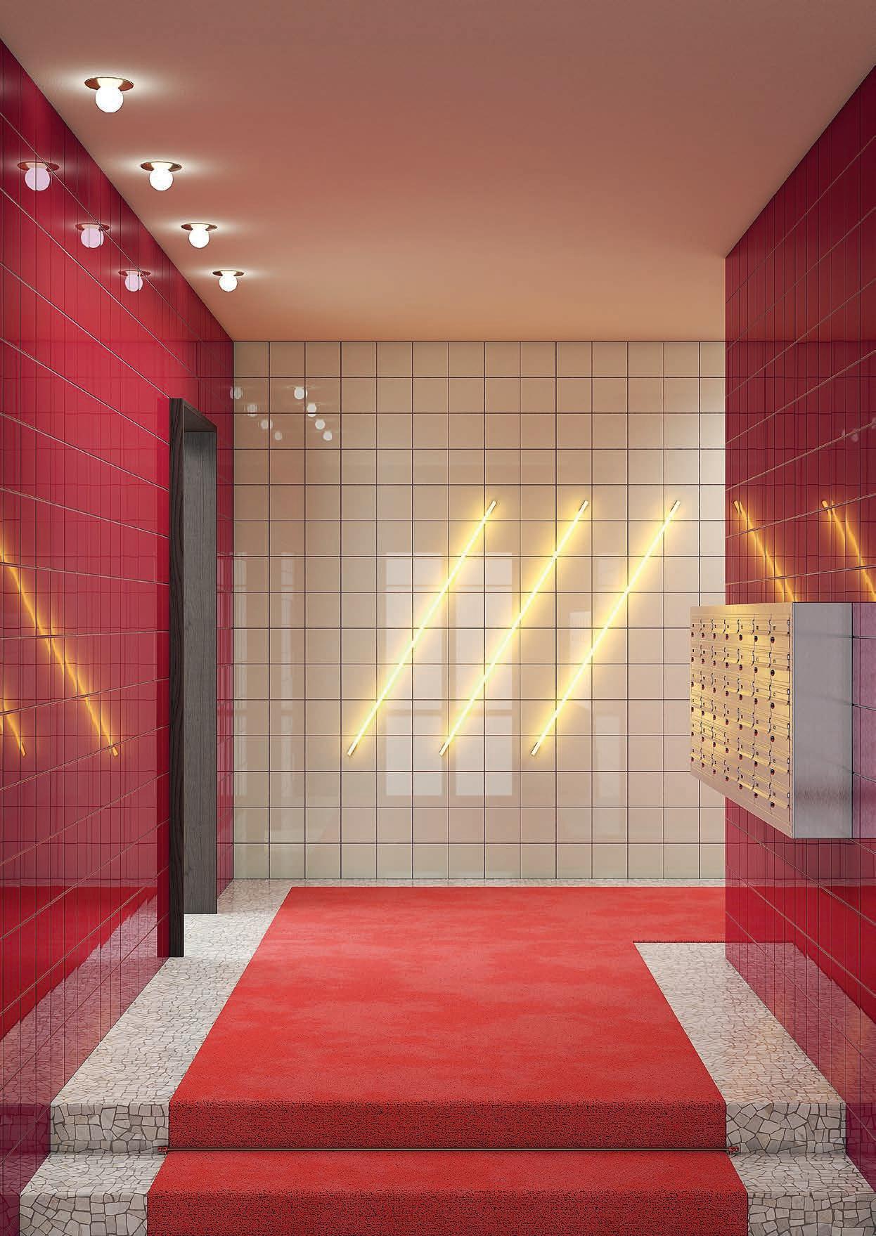 In Cromia, light becomes the protagonist of the collection. The surface is perfectly smooth, particularly shiny and sensitive to light. The colour is uniform and deep, a dynamic composition of light and pigments, able to transform its aesthetic as the hours pass, influencing with reflections and nuances. The essential approach of Cromia, the narrow vocabulary of available shapes, the power of expression of colour and the reflective ability of the glossy finish that dialogues with light creating emphasis and nuances, makes Cromia an ideal coating to give volume to the architecture. Walls, niches, shelves, ceilings, inserts: an ideal passe-partout for contemporary and monumental coatings, which manages to go beyond purely aesthetic characters to get straight to emotions.