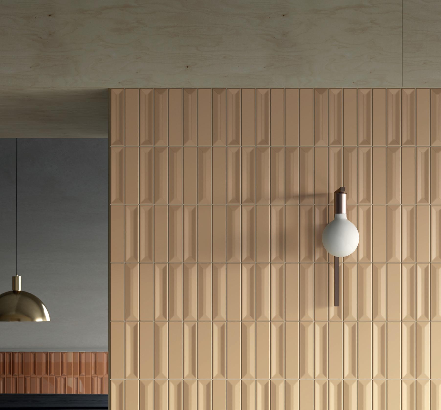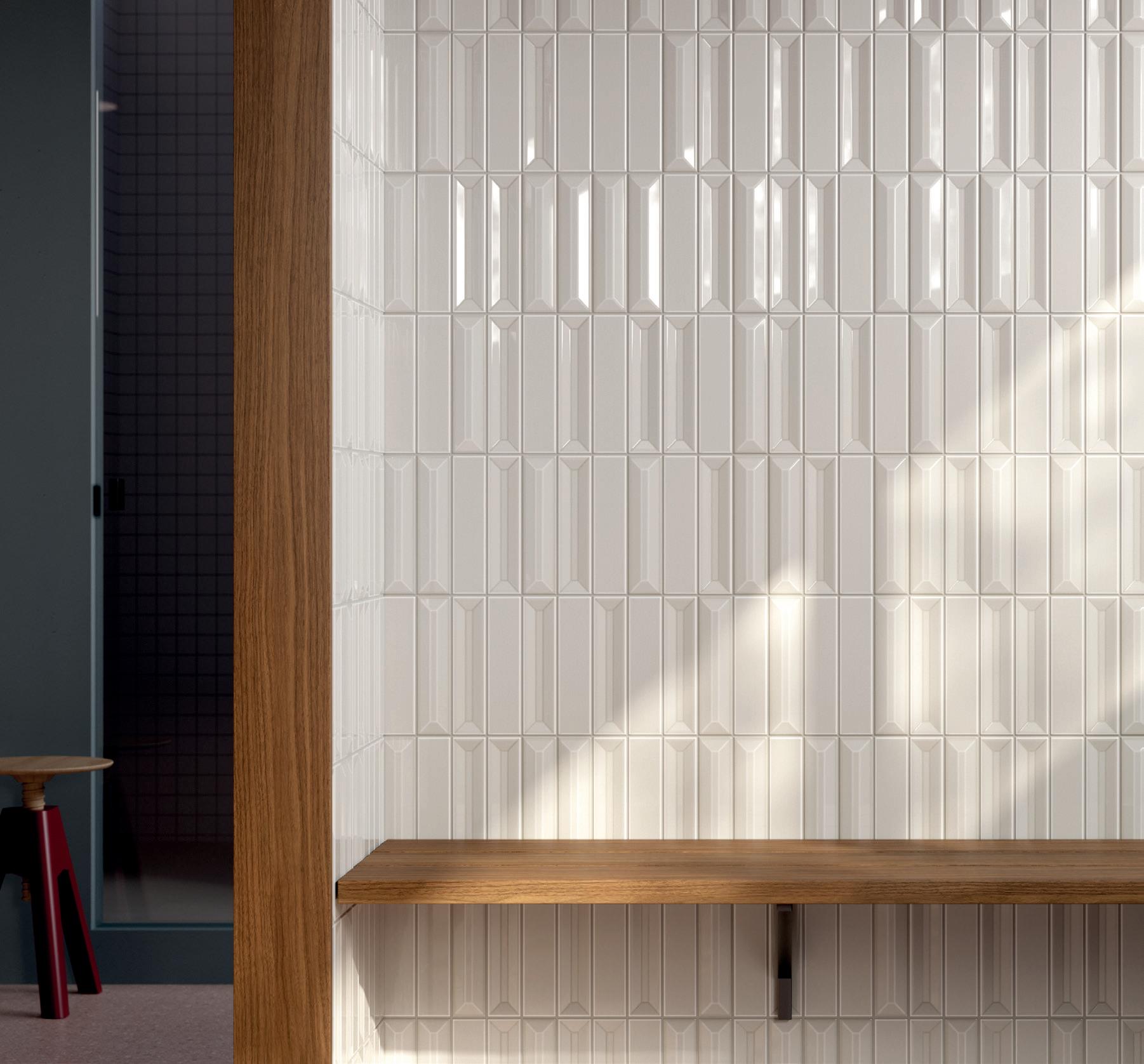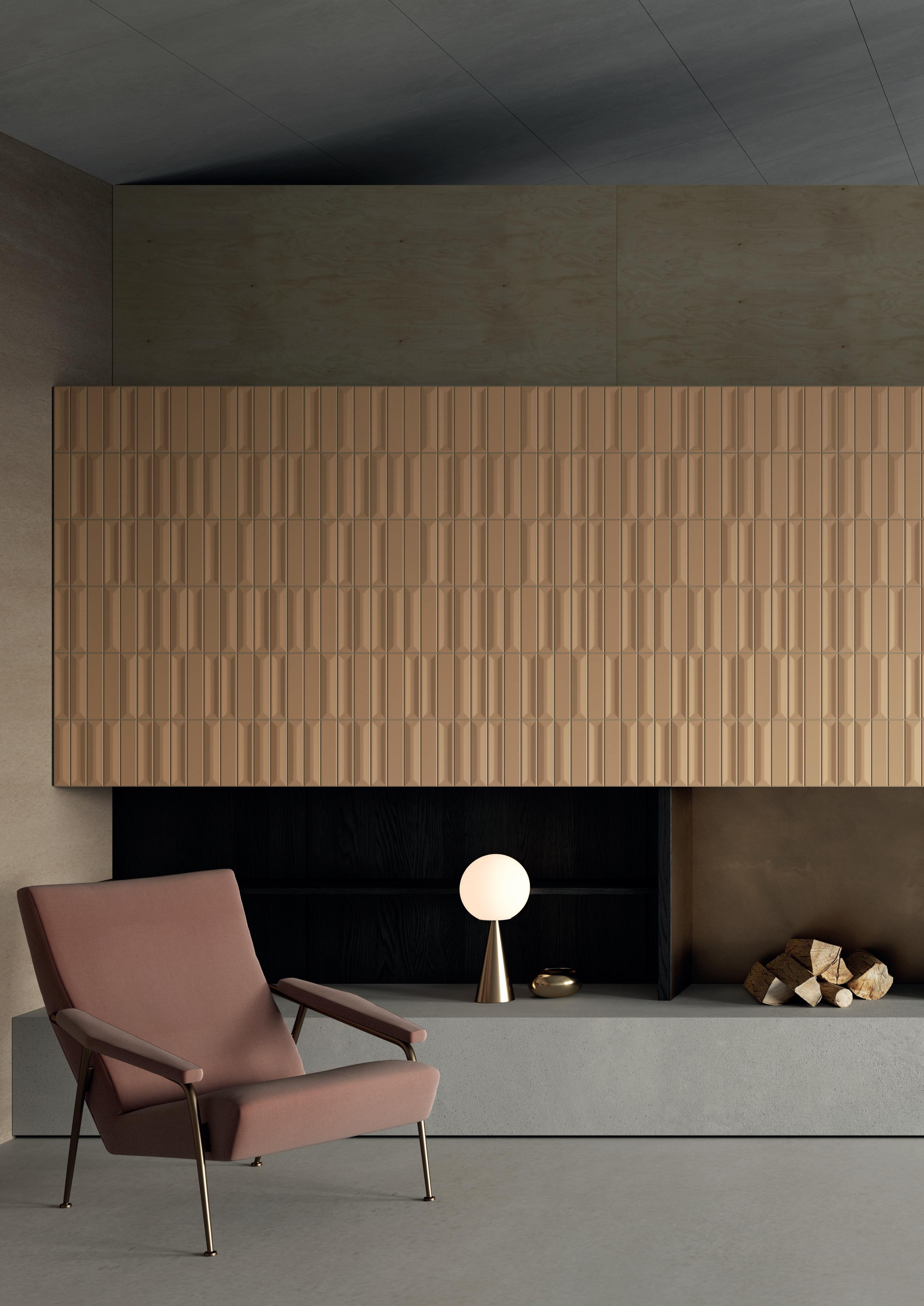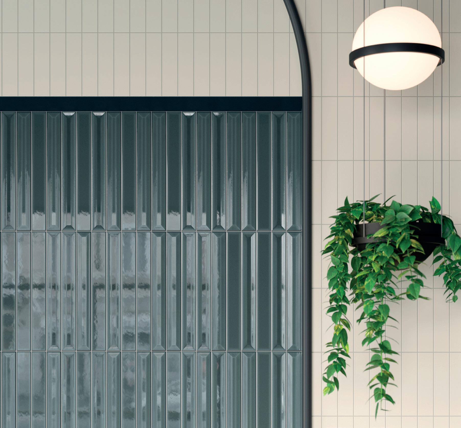 Thecollectionincludesconcave,convexandflatstripsin5x20cmand5x40cmsizes,mountedinmixedcompositionson a30x40cmmesh.Itisavailableinawiderangeofcolorsandfinishes,makingitsuitablefordifferentdesigncontexts— from residential and commercial interiors to façade cladding—in continuity with a typically Italian architectural tradition. Customized solutions also allow the creation of bespoke laying patterns and personalized color mixes.