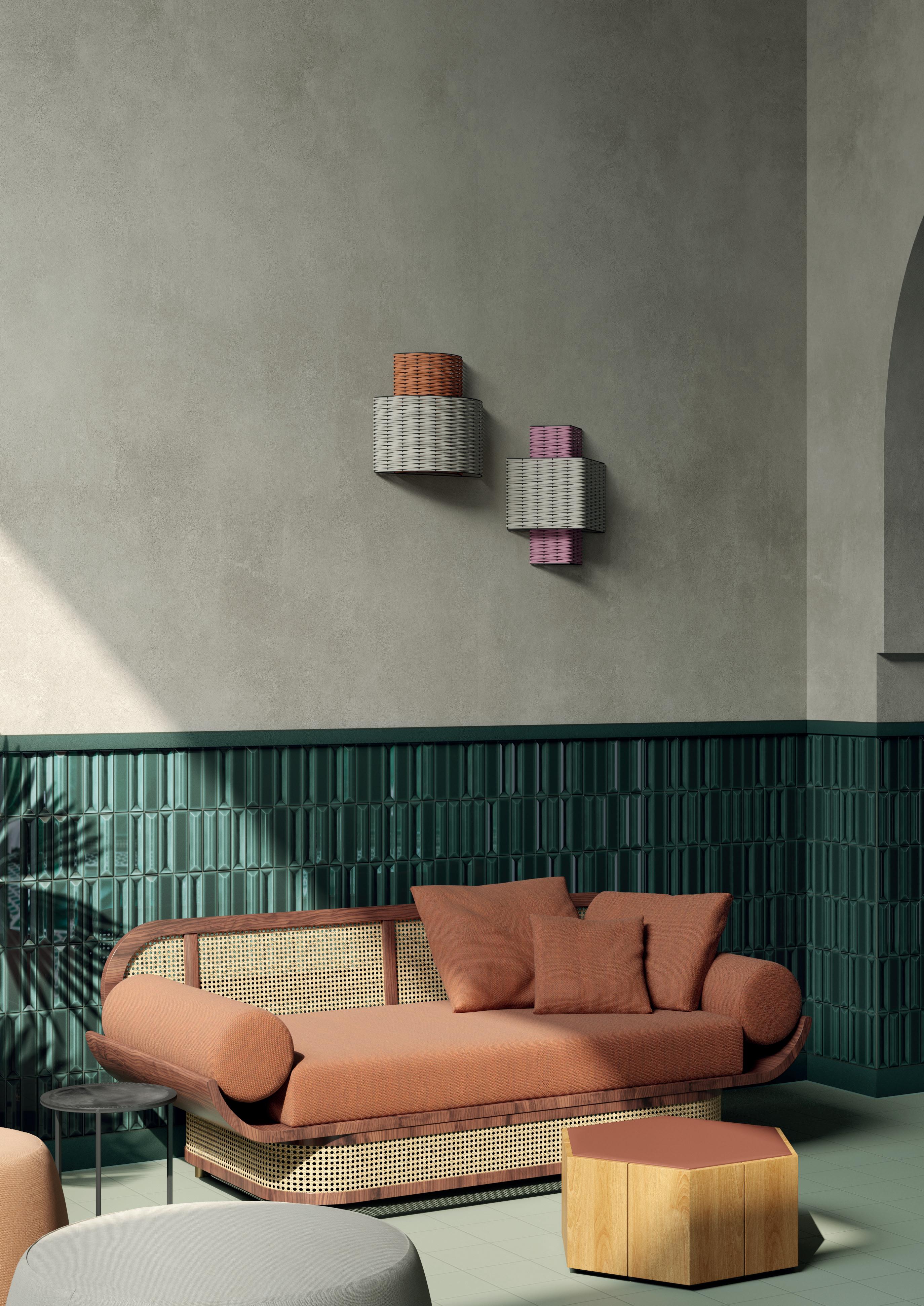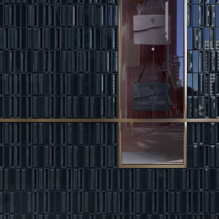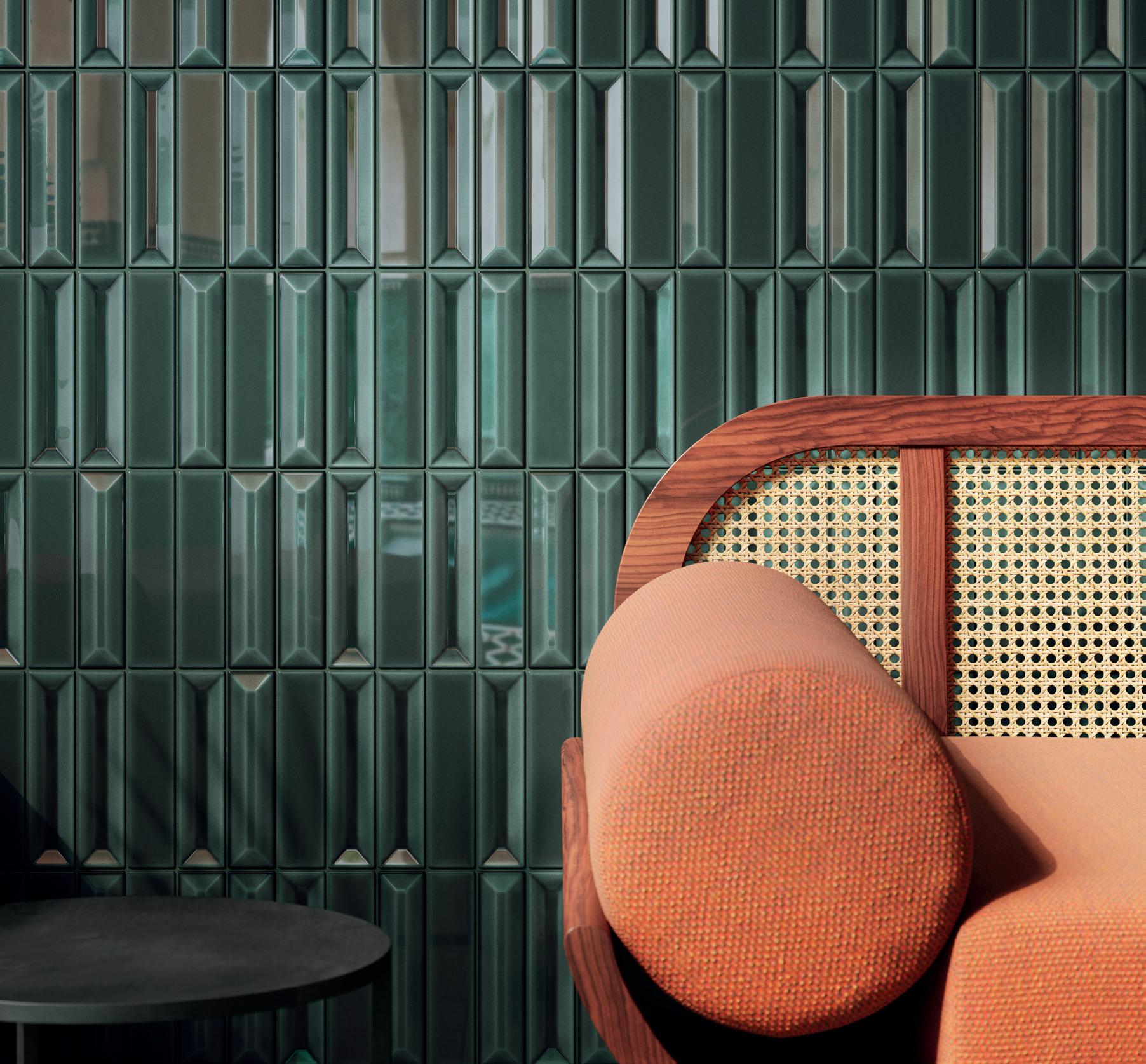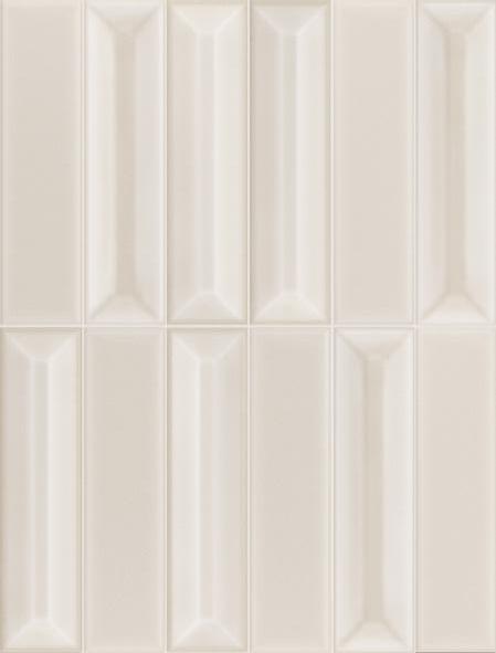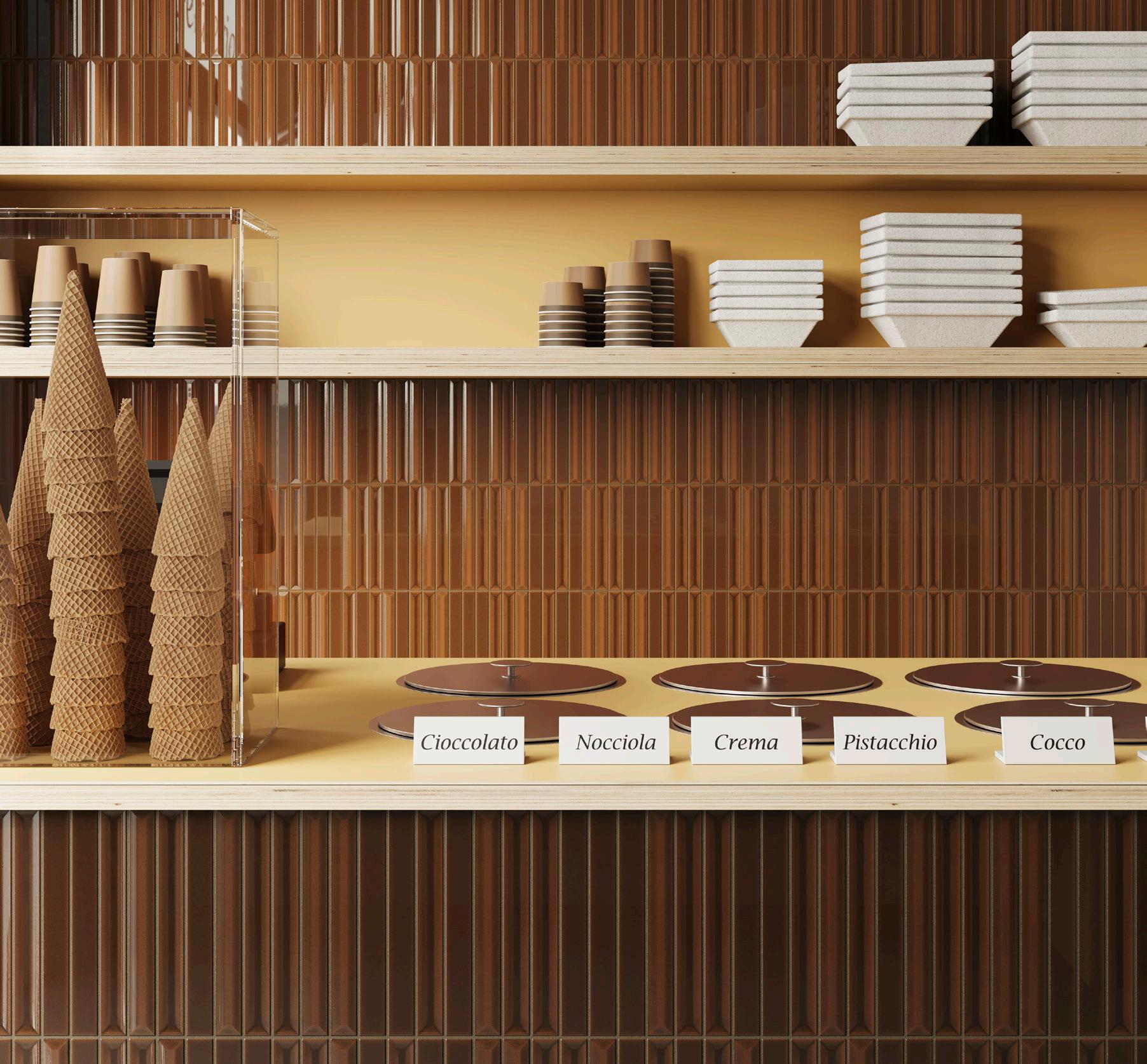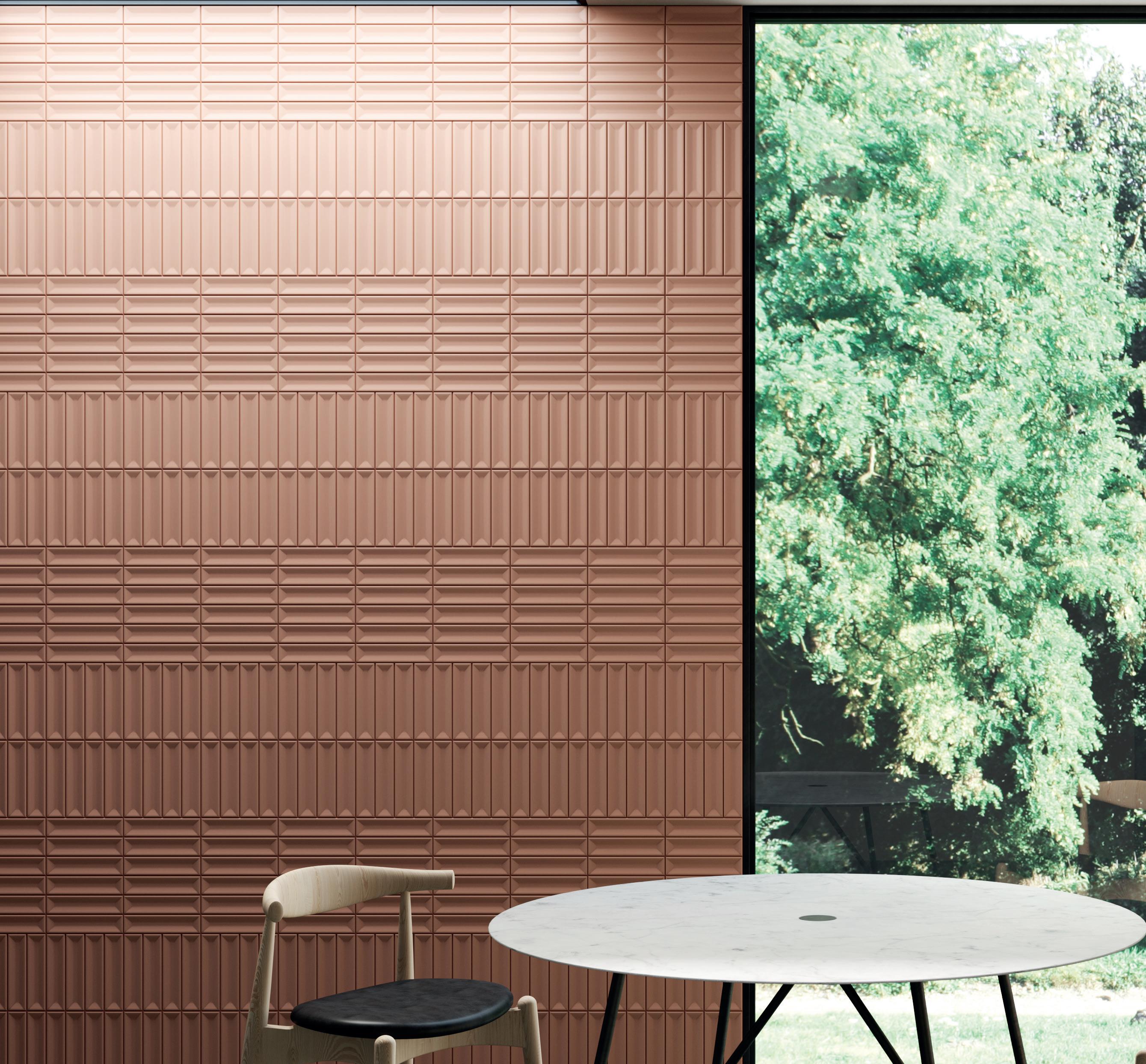 Thecollectionincludesconcave,convexandflatstripsin5x20cmand5x40cmsizes,mountedinmixedcompositionson a30x40cmmesh.Itisavailableinawiderangeofcolorsandfinishes,makingitsuitablefordifferentdesigncontexts— from residential and commercial interiors to façade cladding—in continuity with a typically Italian architectural tradition. Customized solutions also allow the creation of bespoke laying patterns and personalized color mixes.