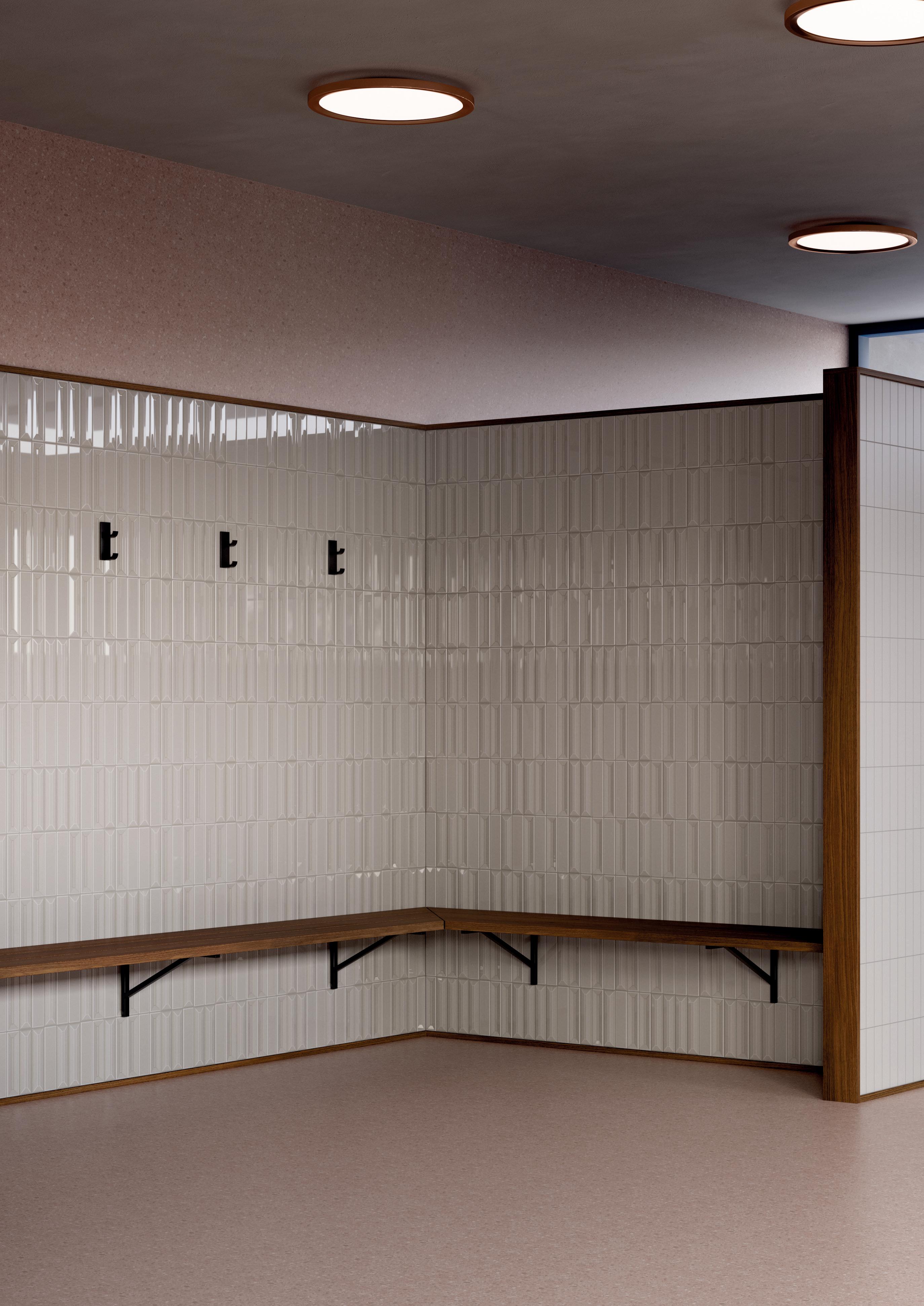 Completing the range is Flautini, a more compact strip measuring 2.5x20 cm, also mounted on a 30x40 cm mesh. This format emphasizes the decorative character of the collection and expands compositional possibilities, enabling the creation of refined details and articulated surfaces. Available in 6 glossy colors, it lends itself to creative applications in retail, hospitality and residential spaces, while ensuring the same technical performance of glazed stoneware and confirming the versatility of the collection.