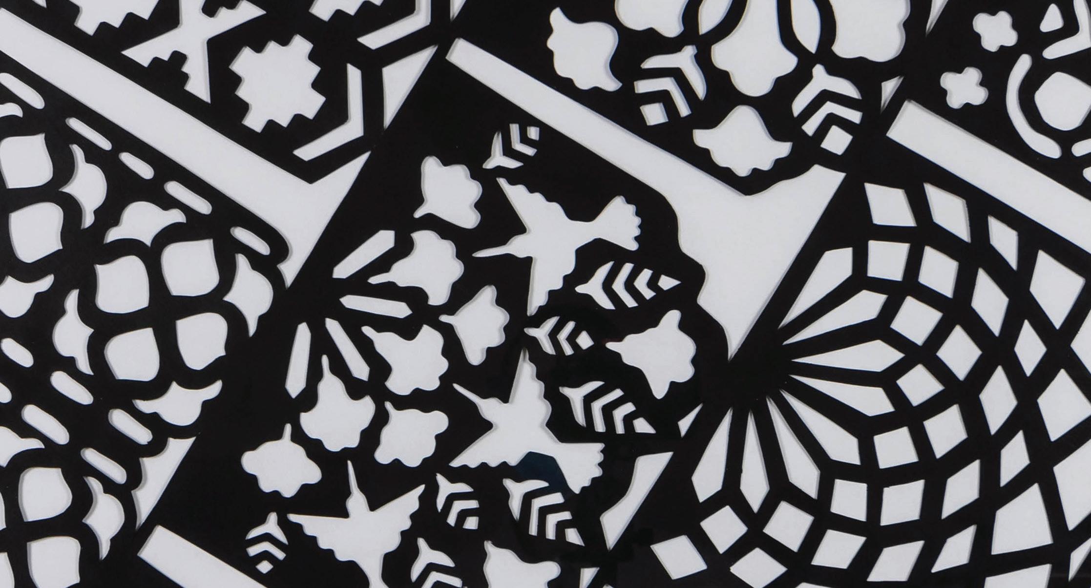 Ausschnitt aus CARMEN LOMAS GARZA , Ofrenda Section #13 (Opfergaben Abschnitt#13), 2011 Schwarzer Papierausschnitt, AltaMed Art Collection, Inv. #13393M