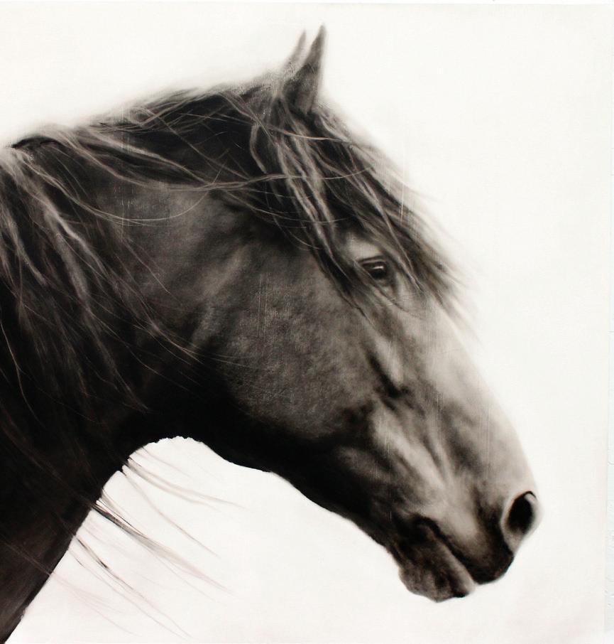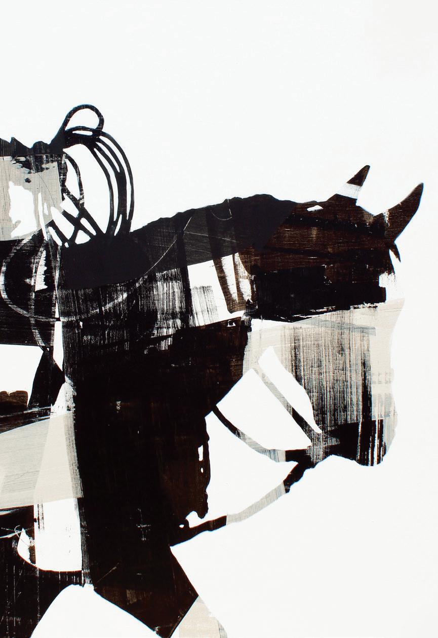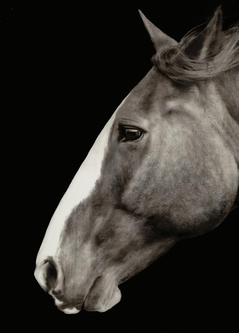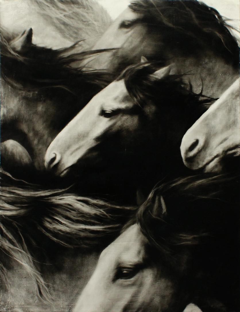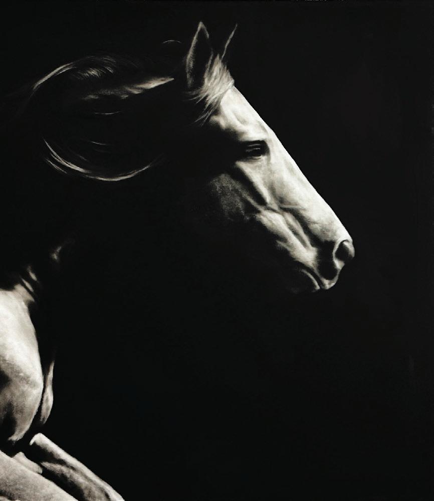 “Faith,” for instance, features a horse against a dark background, with a spotlight casting deep shadows around the equine star. “It looks like he is running through the dark toward something,” Peloke says. The experience of an artist, navigating through uncertainty. An introvert seeking meaning. Or an introvert seeing meaning—the connection someone might forge with the painting. “These large works will connect with people who feel the same way about the scenes, whether it’s conveying a sense of freedom or the ease of simply being beside a companion—the emotions that make us who we are and keep us happy.”