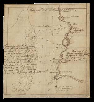 The chart is finely detailed, and extends from Ristigouche Harbour in the west to Indian Point in the east. It was published in ‘The NorthAmerican Pilot for Newfoundland, Labradore, the Gulf and River St. Laurence’ (1775). As the current chart appears not to have been published before its inclusion in the ‘Pilot’, it is most likely that this manuscript chart was prepared specially for it, based on Cook’s survey. It is not known who the hydrographer aboard the man-o-war ‘Norwich’ was, but its companion chart (see item 10) does note that it ran aground in Chaleur Bay, and was “near being lost”... which is not surprising as there are many references to “mud” and “hard ground” throughout.