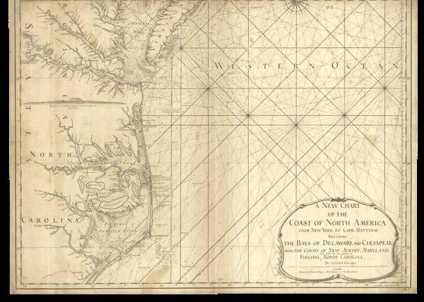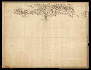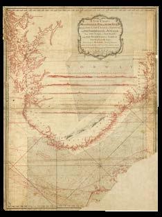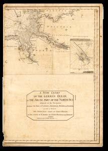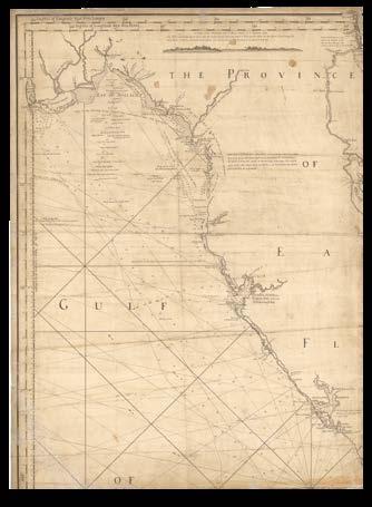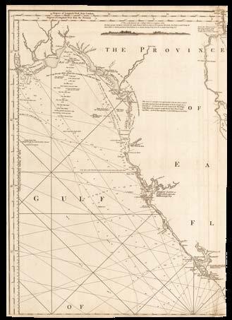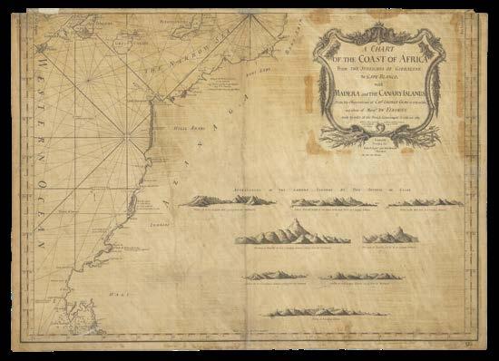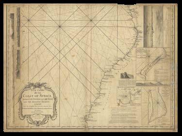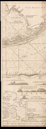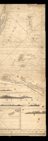 The Americas, The North and Irish Seas, The Baltic, The Channel, The Mediterranean, and Africa, including: the Canadian surveys of Captain James Cook, which includes one of only two known copper plates of his work; the mysterious Captain Holland’s charts of the northeastern seaboard of the newly-minted United States of America; Bernard Romans’s manuscript for his monumental chart of Florida – a genuine “treasure map” used to locate a sunken Spanish galleon; Joseph Huddart’s accurate surveys of the waters surrounding the British Isles; charts documenting the infamous “Middle Passage” route between West Africa, the West Indies, and the Americas, by which ships crossed the Atlantic Ocean with their cargo of enslaved people.