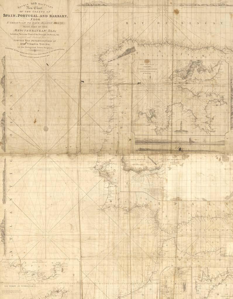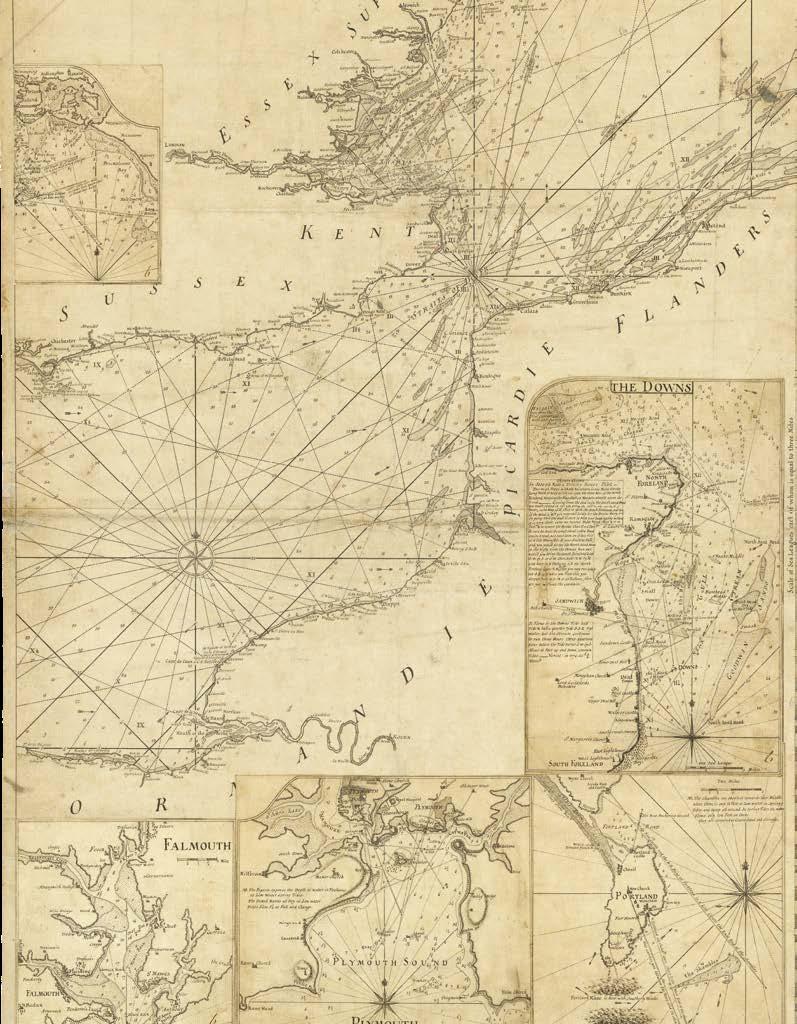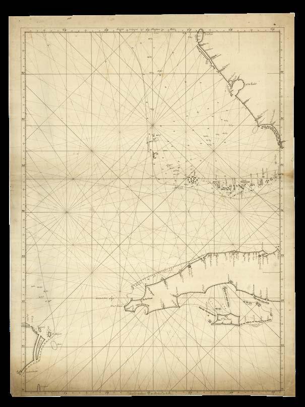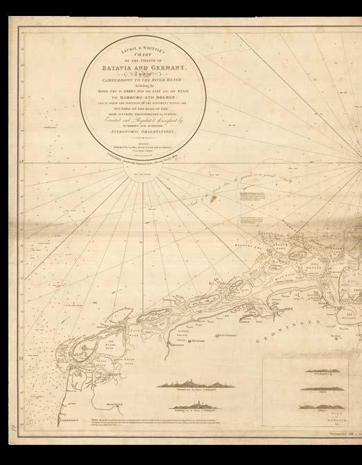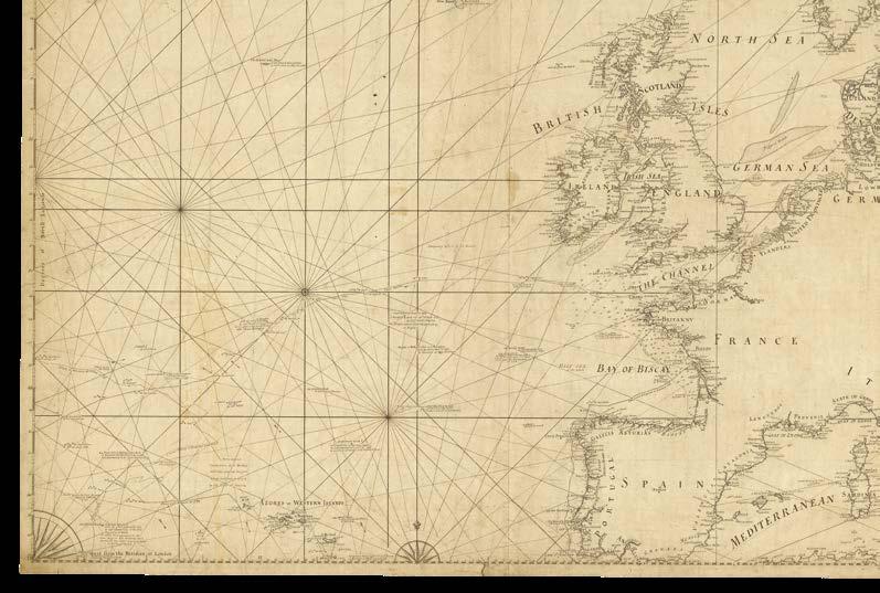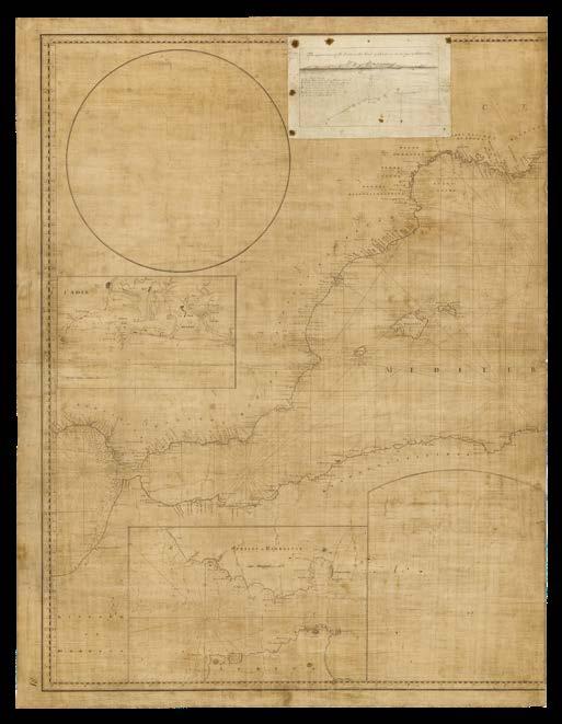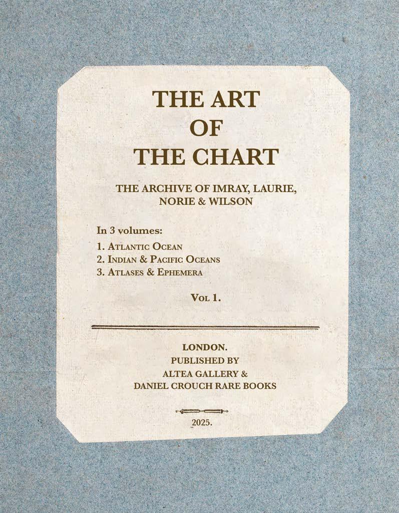 It is with great pleasure that Altea Gallery and Daniel Crouch Rare Books bring you this catalogue of the manuscript and printed archive of the worldrenowned maritime chart publisher Imray, Laurie, Norie and Wilson Ltd. The collection features over 200 manuscript charts, and 24 atlases, together with catalogues, sailing directions, and associated ephemera. The archive depicts the maritime world during the last quarter of the eighteenth, and the first quarter of the nineteenth centuries. This is a world defined not only by great advances in navigation, exploration, economics, and science, but also a world shaped by political upheaval and revolutions, and by the emergence of the British Empire as the world’s pre-eminent superpower. This is a world in which the map can be seen as a symbol of progress and of the Age of Reason: a physical manifestation of the scientific method and of the organization of knowledge. It is no accident that the encyclopaedists Diderot and d’Alembert, called their work “a kind of world map”, or Ephraim Chambers referred to his 1728 dictionary as a “map of knowledge”, or that Carl Linnaeus described his system of classification as a “mappa naturae”. No form of cartography is more redolent of this than the sea chart: a scientific instrument that codifies and defines the globe and enables commerce and wealth creation.