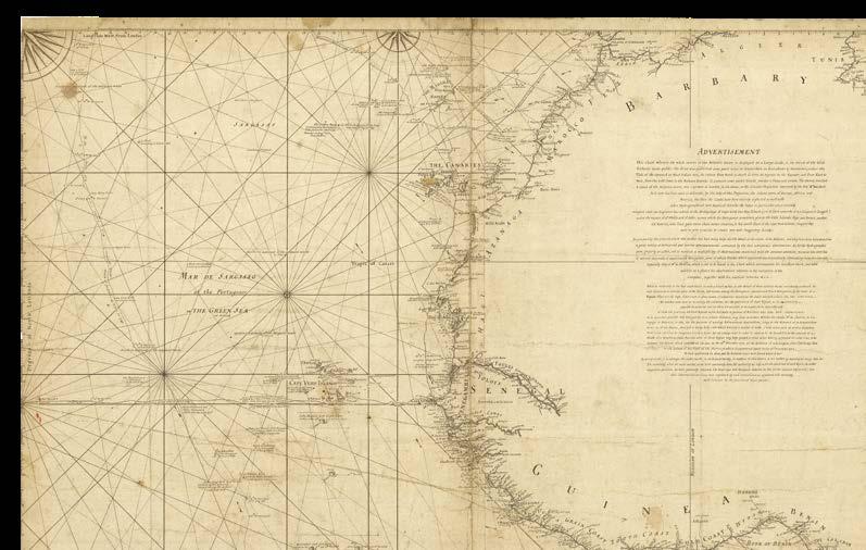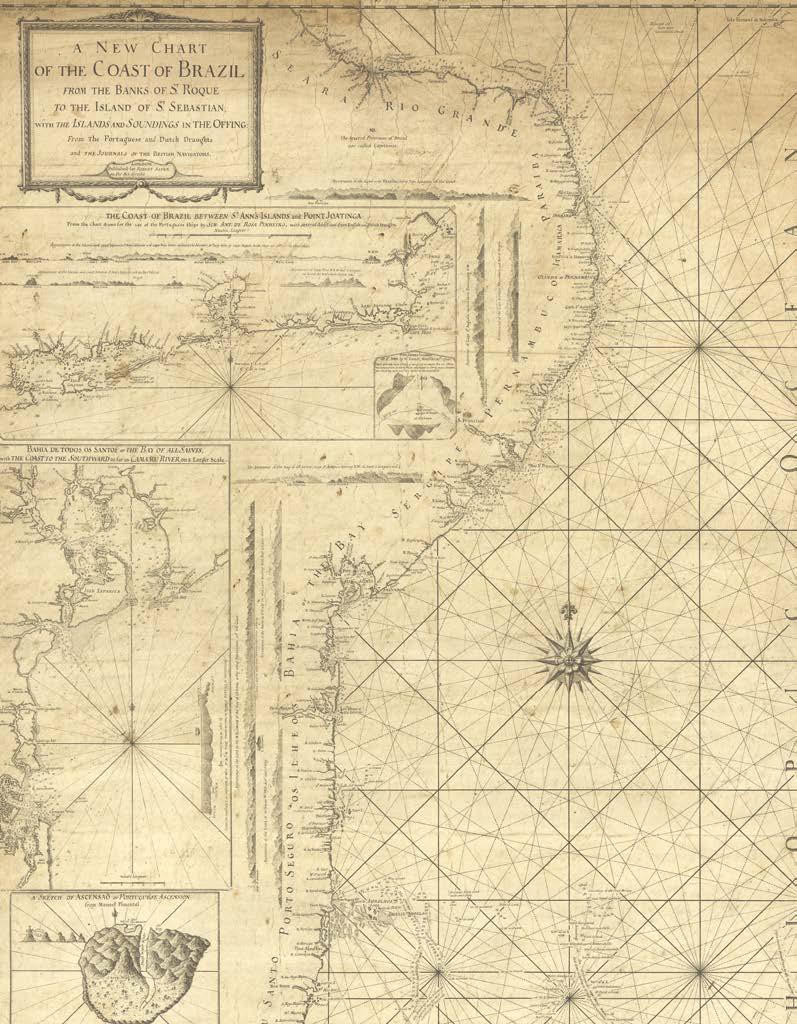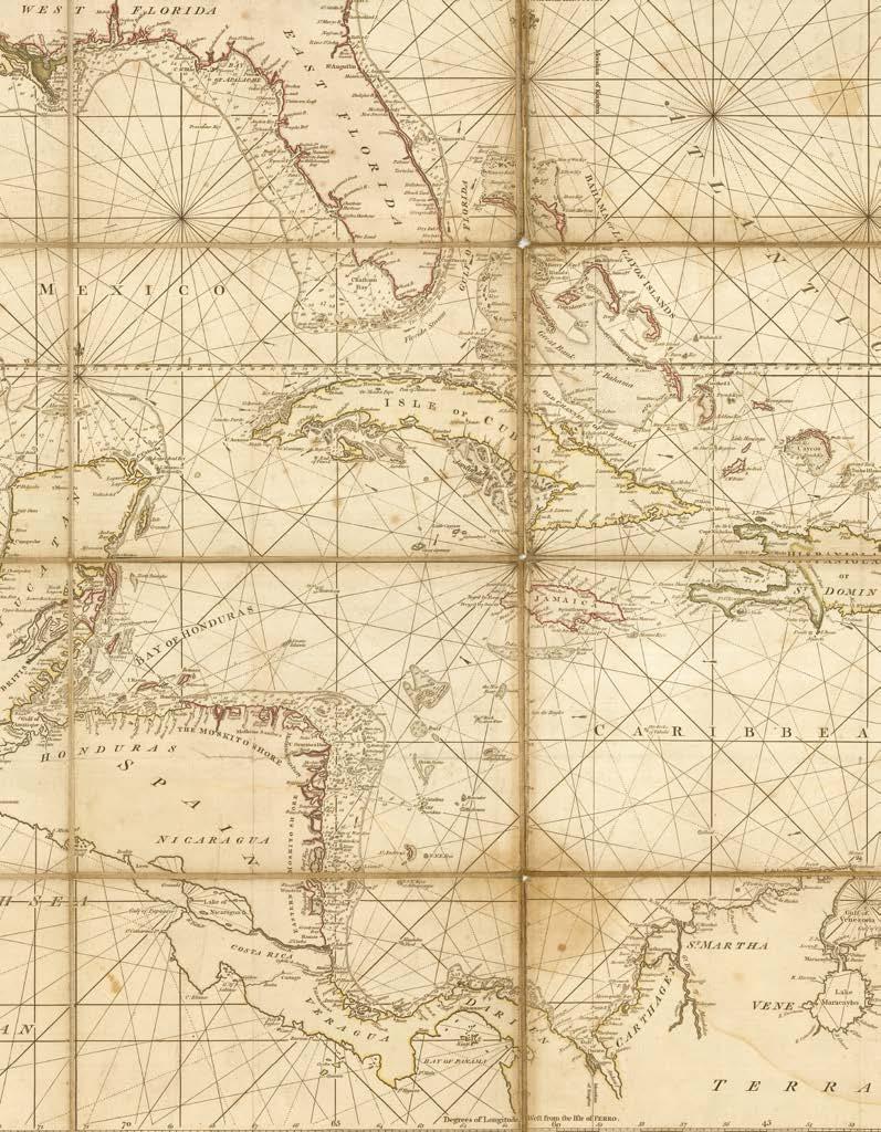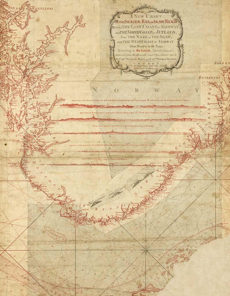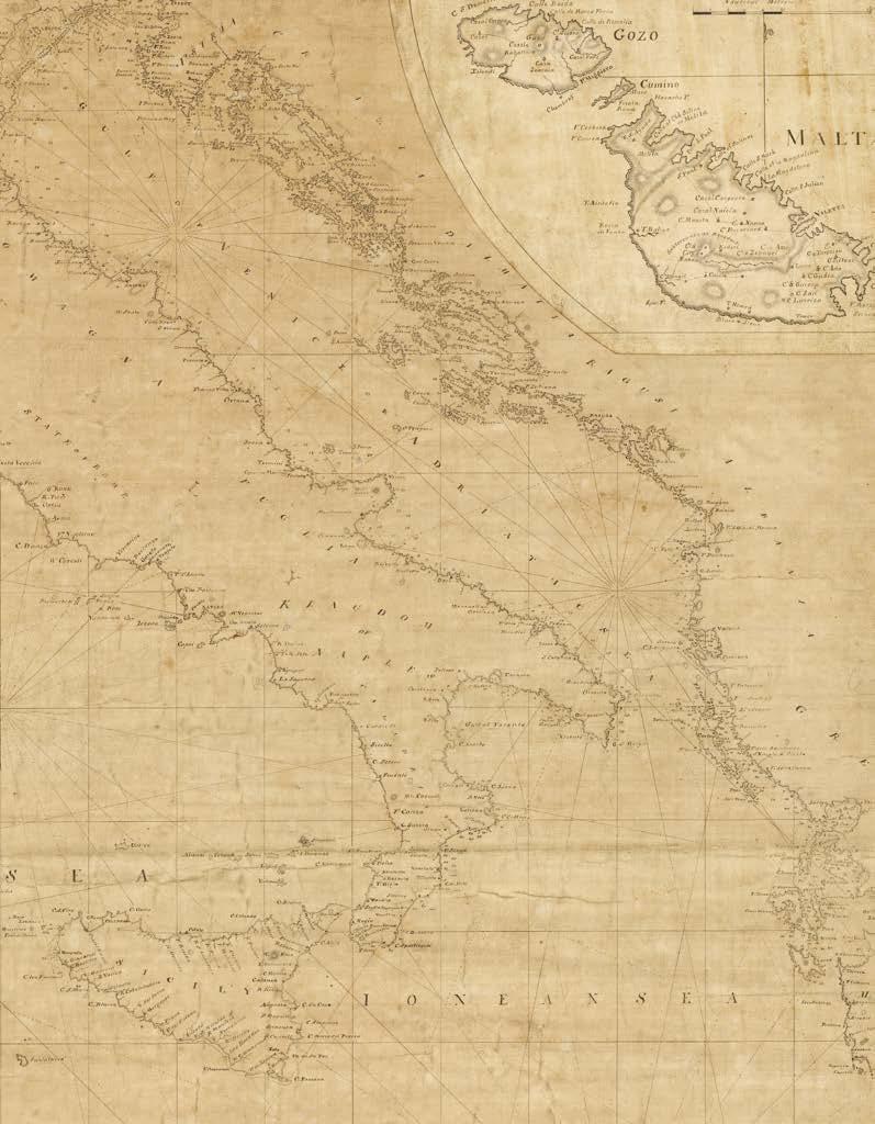 It is with great pleasure that Altea Gallery and Daniel Crouch Rare Books bring you this catalogue of the manuscript and printed archive of the worldrenowned maritime chart publisher Imray, Laurie, Norie and Wilson Ltd. The collection features over 200 manuscript charts, and 24 atlases, together with catalogues, sailing directions, and associated ephemera. The archive depicts the maritime world during the last quarter of the eighteenth, and the first quarter of the nineteenth centuries. This is a world defined not only by great advances in navigation, exploration, economics, and science, but also a world shaped by political upheaval and revolutions, and by the emergence of the British Empire as the world’s pre-eminent superpower. This is a world in which the map can be seen as a symbol of progress and of the Age of Reason: a physical manifestation of the scientific method and of the organization of knowledge. It is no accident that the encyclopaedists Diderot and d’Alembert, called their work “a kind of world map”, or Ephraim Chambers referred to his 1728 dictionary as a “map of knowledge”, or that Carl Linnaeus described his system of classification as a “mappa naturae”. No form of cartography is more redolent of this than the sea chart: a scientific instrument that codifies and defines the globe and enables commerce and wealth creation.