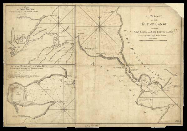 A Draught of the Gut of Canso between Nova Scotia and Cape Breton Island, Surveyed by the King’s Ships in 1761 [and] A Plan of Port Dauphin on the Eastern Side of Cape Breton Island Surveyed in 1743 [and] A Plan of Murgain or Cow Bay on the Eastern Side of Cape Breton Island, surveyed in August 1760.