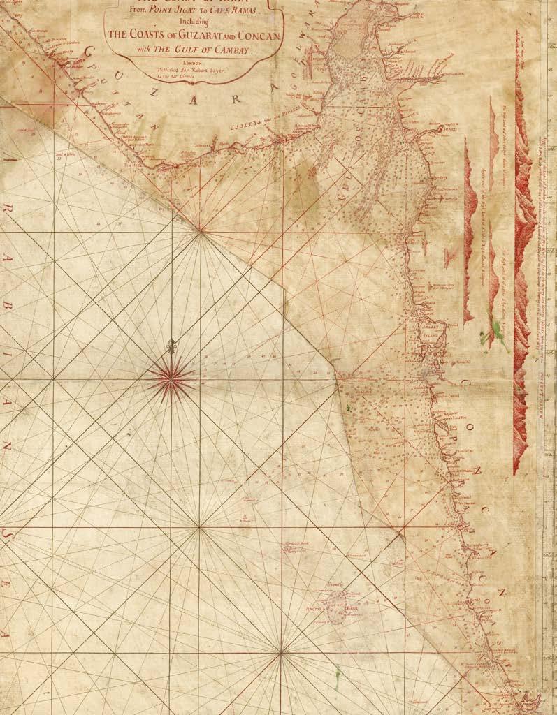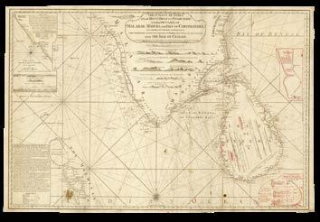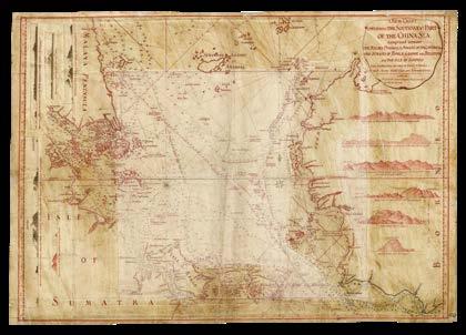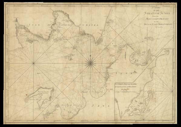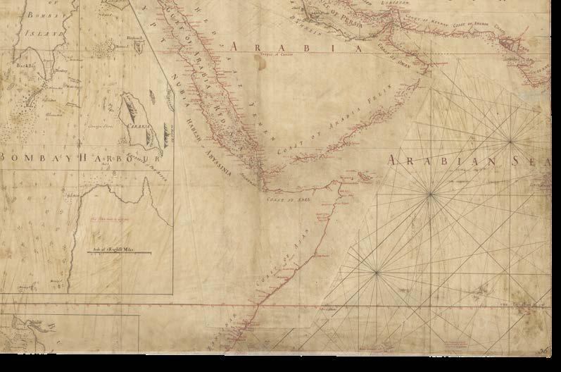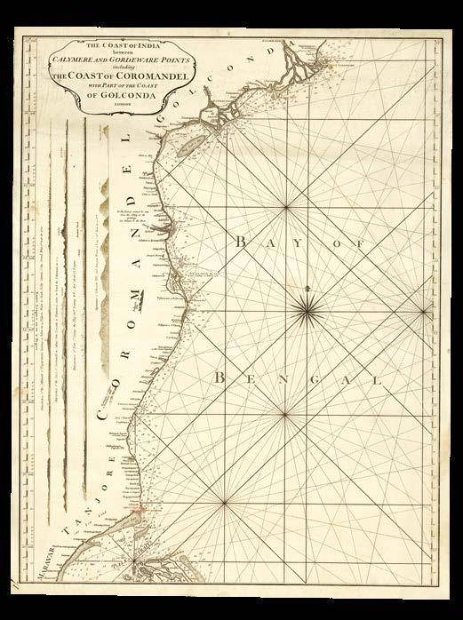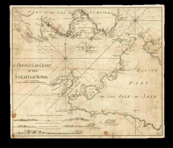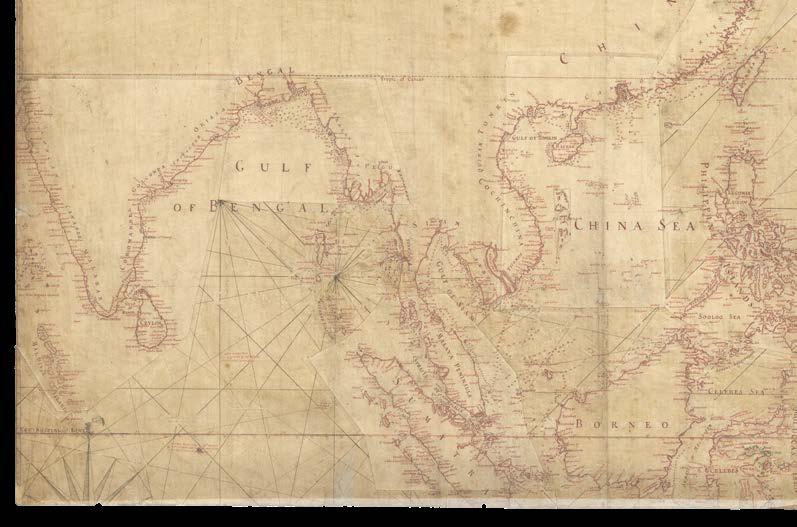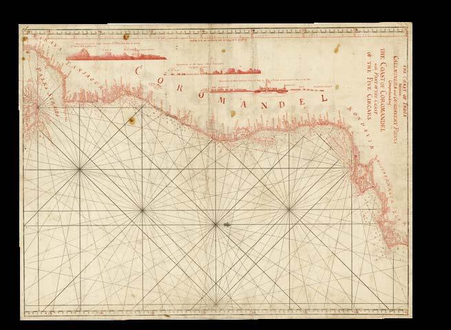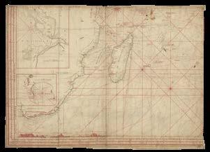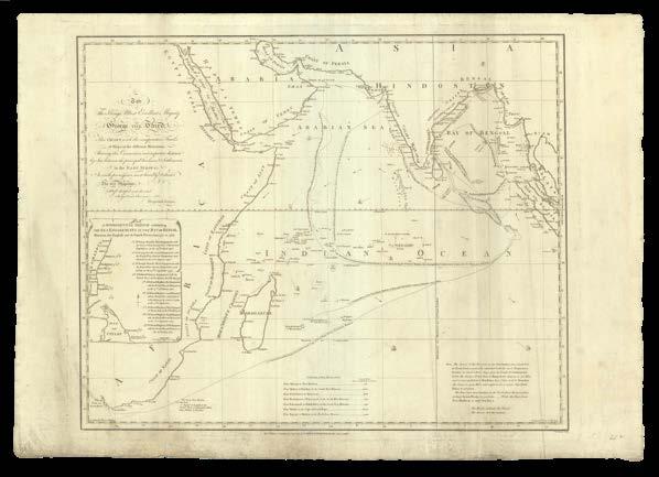 This is evident on both English and Dutch sea charts of the Indian Ocean which, in addition to showing the most up-to-date navigational information and routes to the east, take a special interest in the strongholds and notable voyages of their rivals. The sea charts themselves were closelyguarded, but smuggling was not uncommon as each sought to obtain the valuable knowledge to be found on the charts of the other. At times of lesser tension, however, information was sometimes shared, and chart-makers were not hesitant to include hydrographical information from their rivals’ published charts. The charts presented here illustrate this story of European rivalry over the waters of the Indian Ocean during the seventeenth and eighteenth centuries.