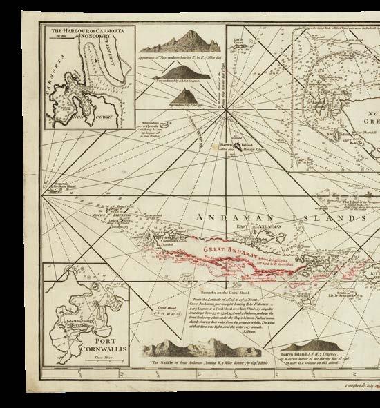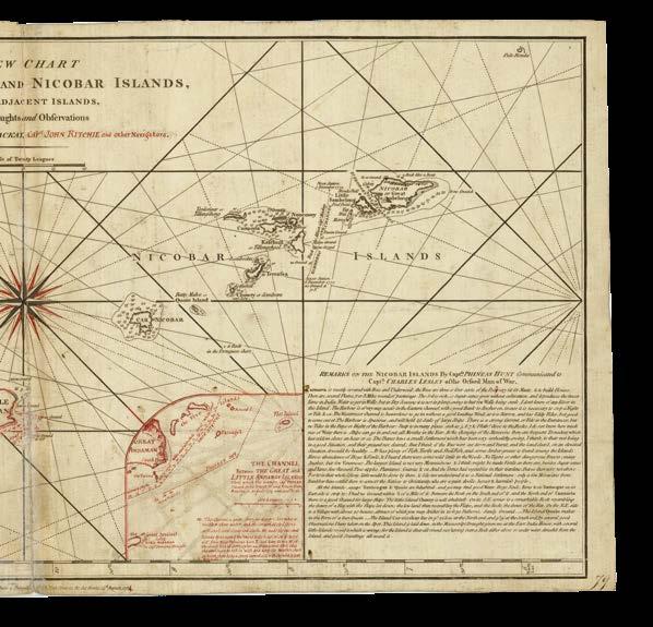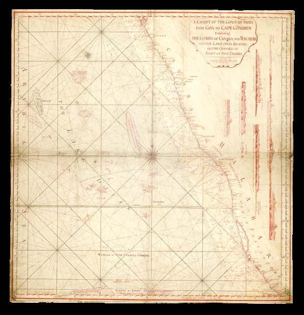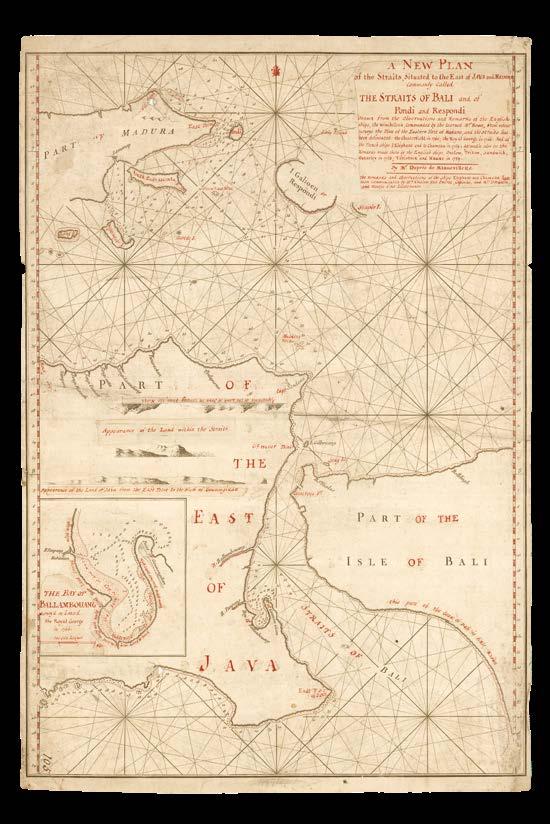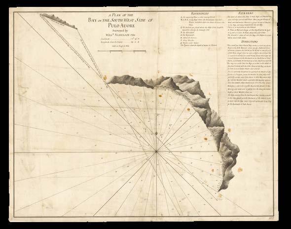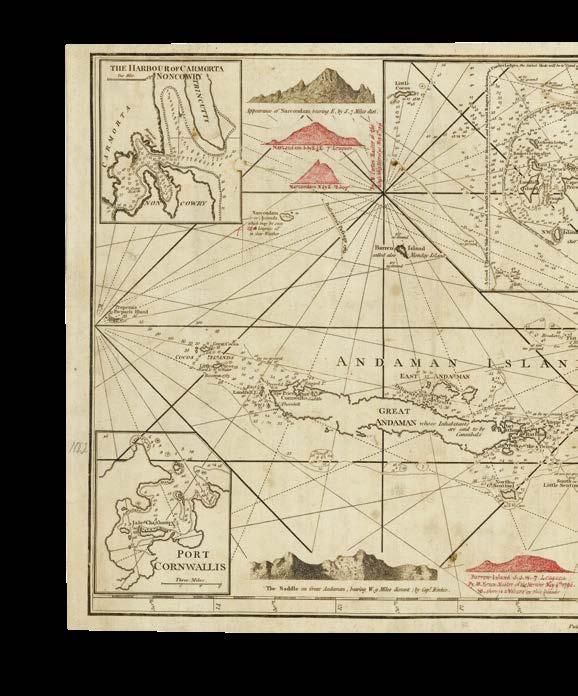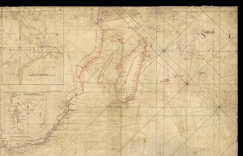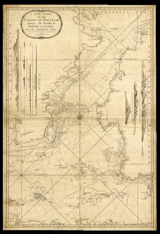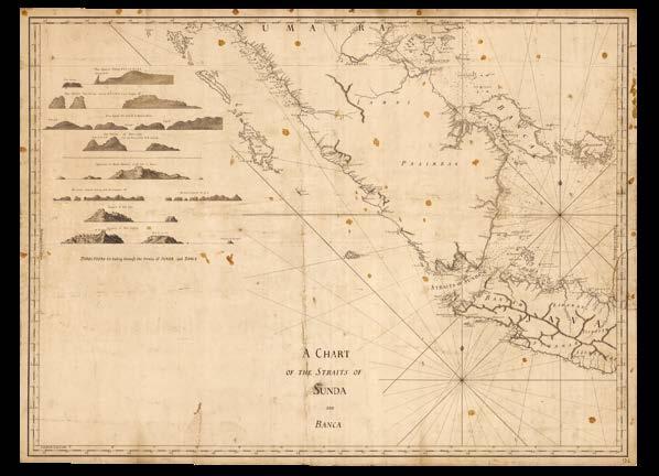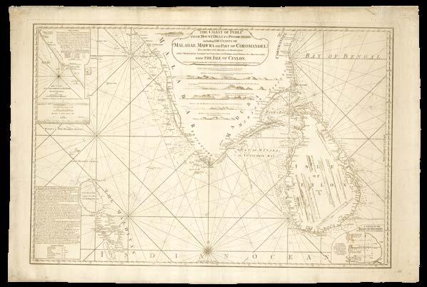 This is evident on both English and Dutch sea charts of the Indian Ocean which, in addition to showing the most up-to-date navigational information and routes to the east, take a special interest in the strongholds and notable voyages of their rivals. The sea charts themselves were closelyguarded, but smuggling was not uncommon as each sought to obtain the valuable knowledge to be found on the charts of the other. At times of lesser tension, however, information was sometimes shared, and chart-makers were not hesitant to include hydrographical information from their rivals’ published charts. The charts presented here illustrate this story of European rivalry over the waters of the Indian Ocean during the seventeenth and eighteenth centuries.