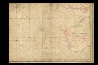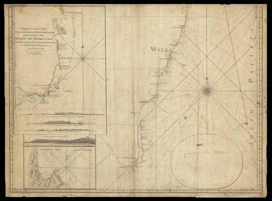 Nevertheless, in one major respect the chart was tragically out-ofdate the minute it was published. While the exact relationship between Van Diemen’s Land and the Australian mainland, in this manuscript, is shown as obscure, with much red ink attempting to outline the confused coastlines, on the published version, the coastlines are definitely shown as continuous. This better error must surely have haunted the mapmakers, as the existence of the Bass strait that separates the landmasses, was discovered by Bass and Flinders in November/December of 1798, just months before Laurie and Whittle published their final chart, engraved by George Allen, on the 20th of May, 1799. The Bass Strait began to appear on published charts from 1800, and on individual maps of Australia from 1802.
