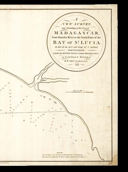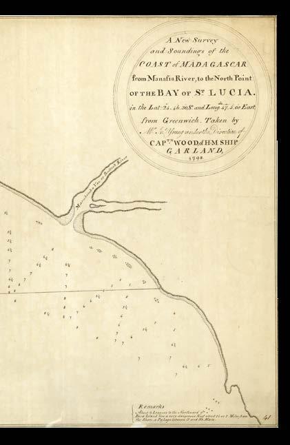 A new survey and soundings of the Coast of Madagascar from Manafia River, to the North Point of the Bay of St. Lucia. in the Lat[itude] 24.46’30” So. and Long[itu]de. 47.5’00” East, from Greenwich, taken by Mr. Jo.n Young under the Direction of Capt[ai]n Wood of H.M. Ship Garland, 1798.