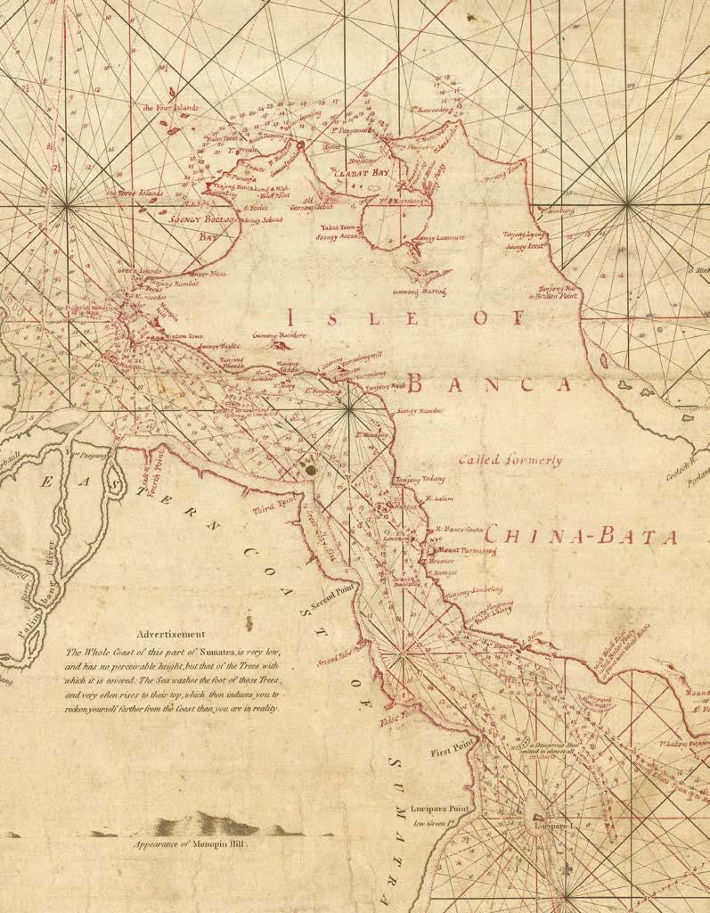 To the King’s most excellent Majesty George the Third; this chart, with the comparative tracks of ships, in the different monsoons; shewing the connection and respective distances by sea, between the principal harbours & settlements in the East Indies; is with permission most humbly dedicated by His Majesty’s most dutiful and devoted subject and servant, Benjamin Lacam.