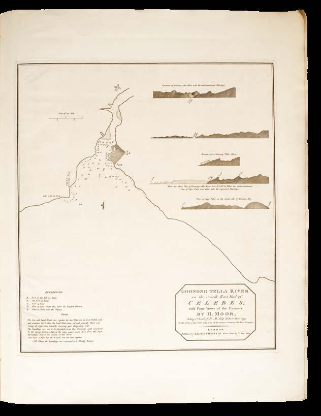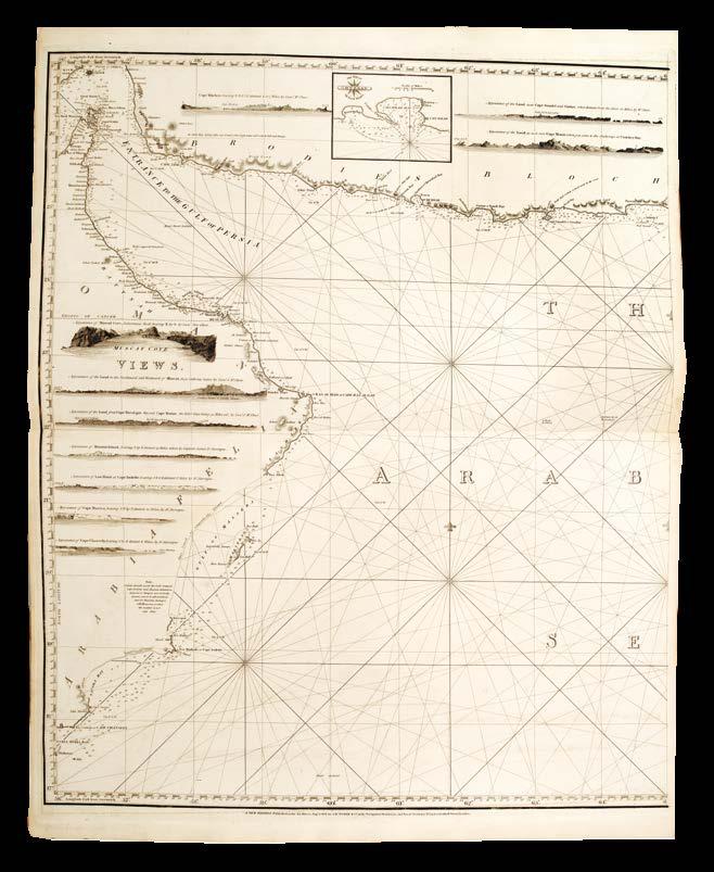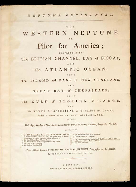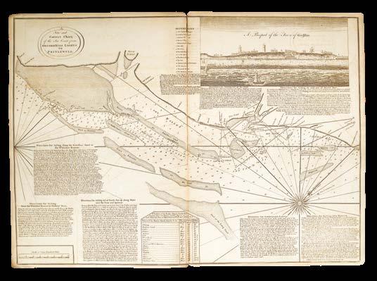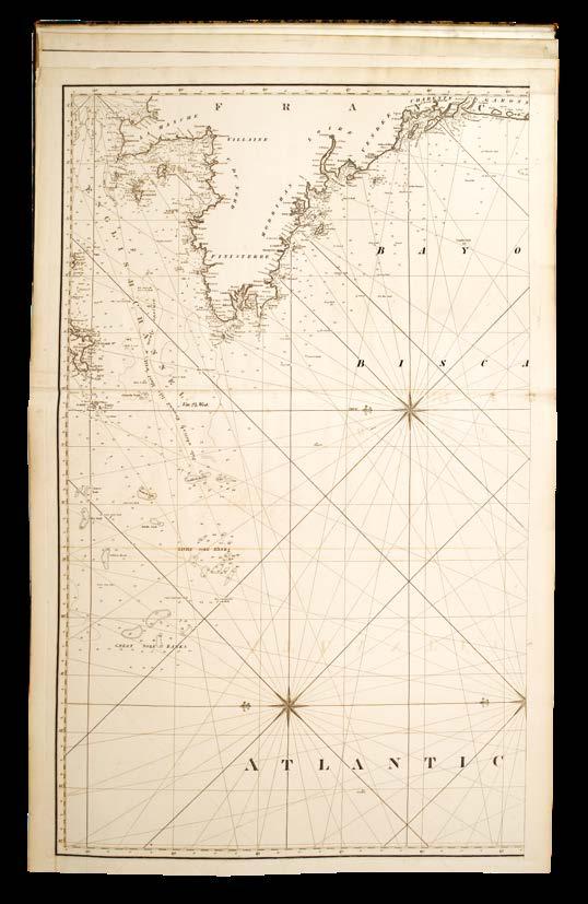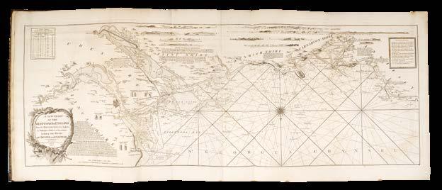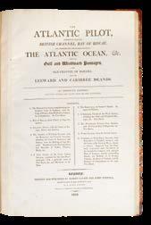 An extremely rare pilot, which extends from the English Channel to the Gold Coast of Africa. The maps themselves are based on earlier cartography: for example, the first chart of the English Channel, while the imprint is dated to 12 May 1800, names Thomas Jefferys (d1771) as the cartographer; and the second through to the fifth charts, while all dated 12 May 1794, name various cartographers, including Bellin, D’Apres de Mannevillette, and D’Anville, all of whom were already deceased.