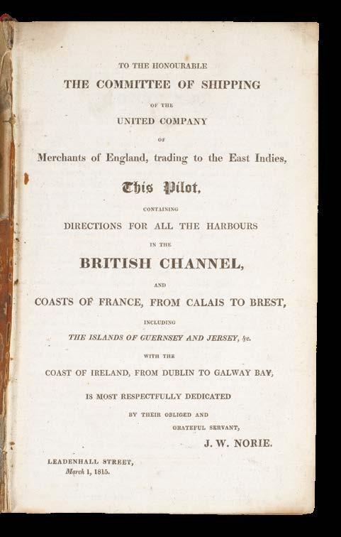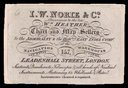 Norie had a prolific output of charts, reissuing Heather’s stock and adding new charts of his own making of all parts of the world. Principal publications include his ‘A new and complete epitome of practical navigation’ (1805), ‘A complete pilot for the south coasts of England and Ireland’ (1817), ‘The new Mediterranean Pilot, containing sailing directions for the coasts of France, Spain, and Portugal, from Ushant to Gibraltar’ (1817), and ‘Norie’s set of celestial maps for finding the principal stars in the heavens’ (1825).