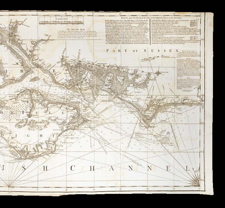 Although the title to the present work is undated – standard procedure for Sayer’s publishing practices – the latest date on the charts is 1789 (chart 9, “An actual survey of the coast from Arundel Haven in Sussex to St. Aldans in Dorsetshire”). It contains 24 charts, with an engraved tide table with moving volvelle bound at the end. The first chart is the 1786 variant of “A new chart of the British Channel” which is then later updated to 12 May 1800 and used in the Atlantic Pilot in this collection (see item 227).