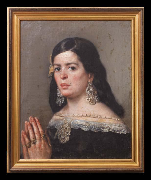 The present portraits depict Don Pedro López de Sagade and his wife Doña Angela Fernandez de Arnesto, benefactors of one of the chapels of the Church of San Andres in Madrid. Although it is one of the oldest churches in the city, unfortunately the interior was completely destroyed during the Spanish Civil War.