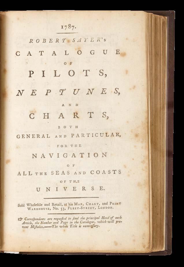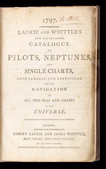 As can be seen, the operations of all four business were clustered along the Thames, with Moore, Steel, and Heather all based in or near Tower Hill. They used the same draughtsmen and engravers, competed for source material, published in partnership, and sold and used each other’s work, sometimes with, sometimes without, permission. Indeed, it was not uncommon for members of the London chart trade to sue each other, with Moore, in particular, being regularly accused of plagiarism, and sued by Sayer (1785), Steel (1789), and Heather (1797) - see items 241 & 242. “Borrowers” they may have been, but the competition provided by multiple suppliers, in close proximity to each other, combined with the wealth of information returning with the world’s largest fleet, enabled maritime navigation to evolve at a rate never before seen. For a brief period, the blueback flourished, with first Sayer and, later, Laurie and Whittle, boasting multi-volume catalogues of their wares, with 25 pilots in 1787 and 35 in 1797 respectively (see items 250 & 251), including Captain Cook’s charts of Newfoundland (see items 4-12).