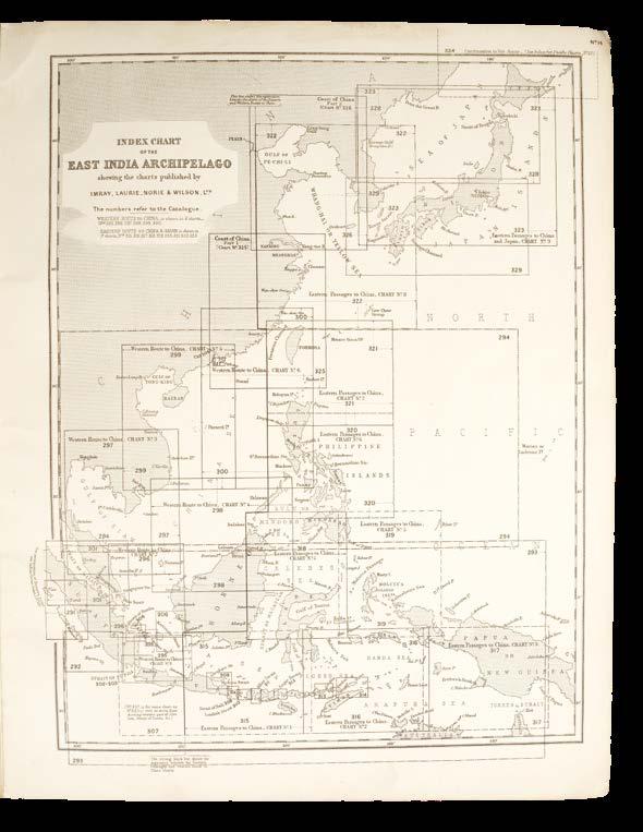 As the Hydrographic Office developed into a prolific official chart publishing organization, backed by the surveying resources of the Royal Navy, it was inevitable that the private publishers would feel the draught of competition. At first the principal private publishers managed to survive with little changed. The Admiralty provided them with hydrographic information of a much higher standard than most of their previous contributors. They concentrated their chart production on areas used by British trade as, unlike the Admiralty, they could disregard areas of purely political and military significance. They competed by keeping the price of their charts to the mariner down by including many largescale insets of ports and narrow channels on smaller scale charts and so reducing the number of charts necessary for a voyage (and, by happy accident for the modern collector, making an attractive work of art in the process). In the same way their sailing directions included everything needed for a long voyage in one volume, unlike the Admiralty’s, which covered smaller areas.