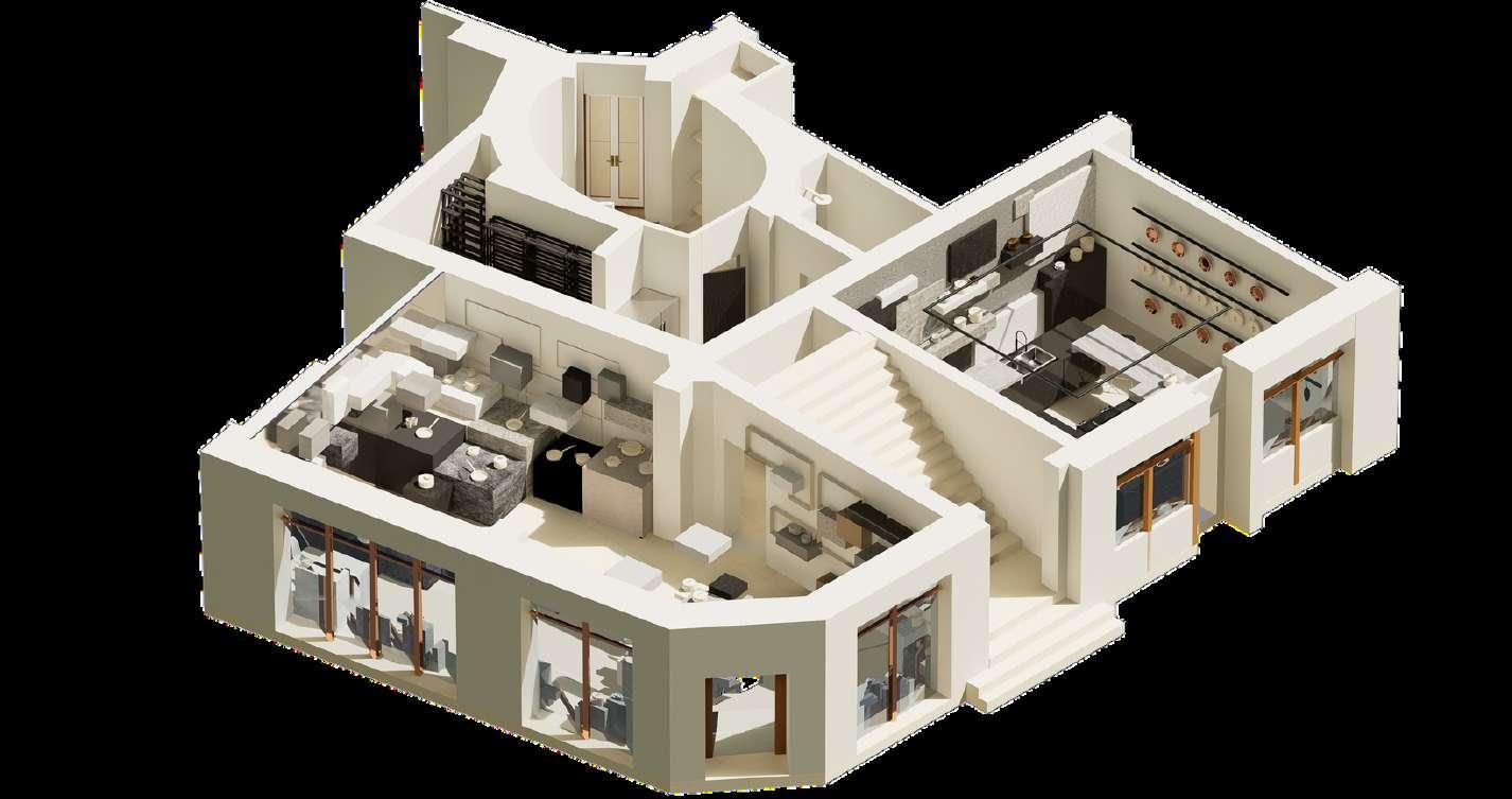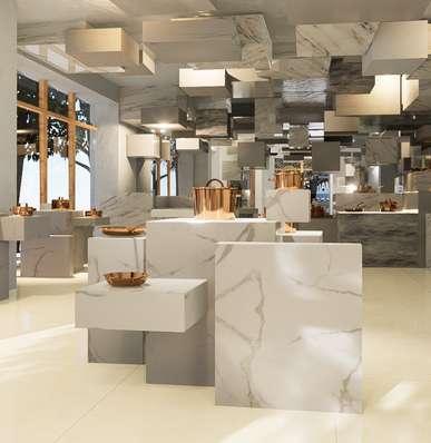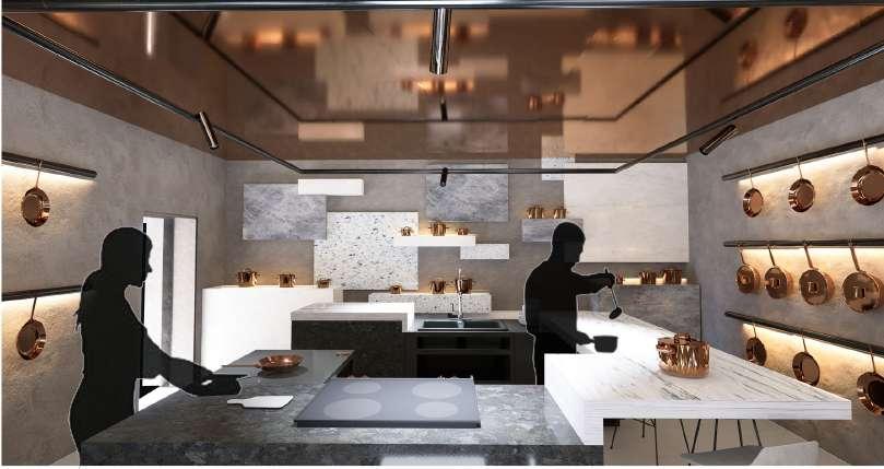 Inception shop is a project designed with the focus in the Cooking Pot. The concept of the shop stays in the contrast being the circular pot shape and the rectangle cubes display and how the display itself transform from just displays to a moving structure that continues up to the ceiling The shop is organizing into three spaces: The display showcase, the Inception Kitchen and the private back-area of the store. The organization of the store is designed for the clients to experience the cooking part as part of art as well as experience the functional of the pots in the kitchen