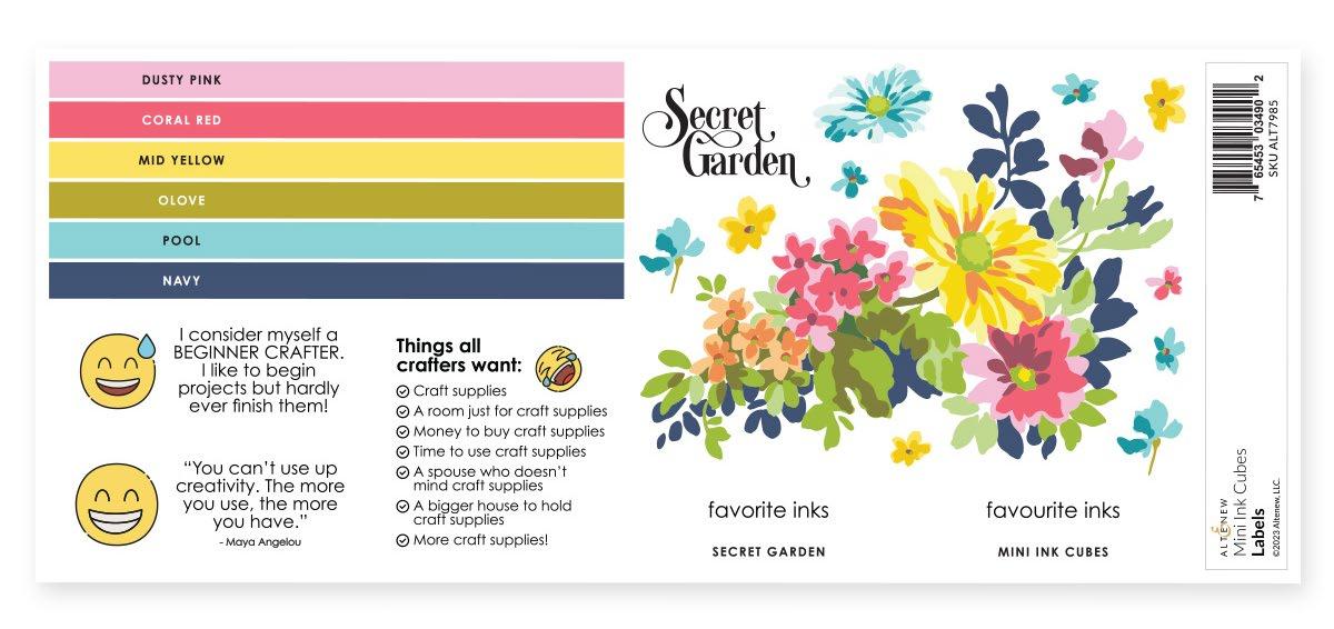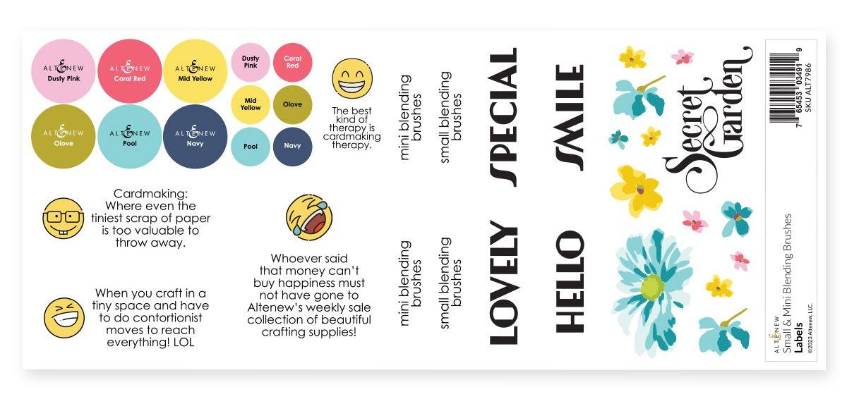 3 SKU Product Name Page ALT8483 Hummingbird Nectar Press Plate 24 ALT8484 Wild Daisies Press Plate 25 ALT8090 Joyous Sentiments Stamp Set 26 - 27 ALT8091 Joyous Sentiments Die Set ALT8092 Birds of the Season Stamp Set 28 -29 ALT8093 Birds of the Season Die Set ALT7670 Island & Space Garden Marker Topper Label Set 30 ALT7671 Mystic & Beach Garden Marker Topper Label Set ALT7980 Round Ink Pads Label Set - Red Sunset, Sweet Dreams 31 ALT7672 Mini Blending Brush Label Set - All Crisp Dye Ink Colors (2 Sheets) 32 ALT7675 Mini Ink Cube Label Set - All Crisp Dye Ink Colors (6 Sheets) ALT7676 Oval Ink Side Label Set - All Crisp Dye Ink Colors (3 Sheets) 33 ALT7677 Small Ink Blending Brush Label Set - All Crisp Dye Ink Colors (4 Sheets) ALT7977 Round Ink Pads Label Set - Blue Mountains, Frosted Foliage, Woodland Escape 34 ALT7978 Mini Ink Cubes Label Set - Blue Mountains, Frosted Foliage, Woodland Escape ALT7979 Small & Mini Blending Brushes Label Set - Blue Mountains, Frosted Foliage, Woodland Escape ALT7981 Round Ink Pads Label Set - 2023 Amy Tangerine Collection 35 ALT7982 Mini Ink Cubes Label Set - 2023 Amy Tangerine Collection ALT7983 Small & Mini Blending Brushes Label Set - 2023 Amy Tangerine Collection ALT7984 Round Ink Pads Label Set - Deco Garden 36 ALT7985 Mini Ink Cubes Label Set - Deco Garden ALT7986 Small & Mini Blending Brushes Label Set - Deco Garden