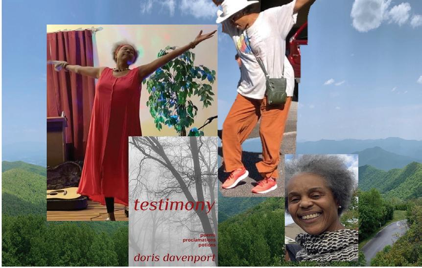 doris davenport aka “Dr. D.” Pronouns - person / per; Visionary 75-yearold sapiosexual lesbian-feminist born & raised in traditional Cherokee Homelands (colonized as Northeast Georgia). Performance poet, writer, educator. BA Paine College; MA SUNY/Buffalo; PhD Univ. of Southern California. ROOTS member since 1998. Testimony, person’s 13th published book, is now available. Facebook: https://www. facebook.com/doris.davenport.37; Linked in: https://www.linkedin. com/in/davenportpoetprofessor/
