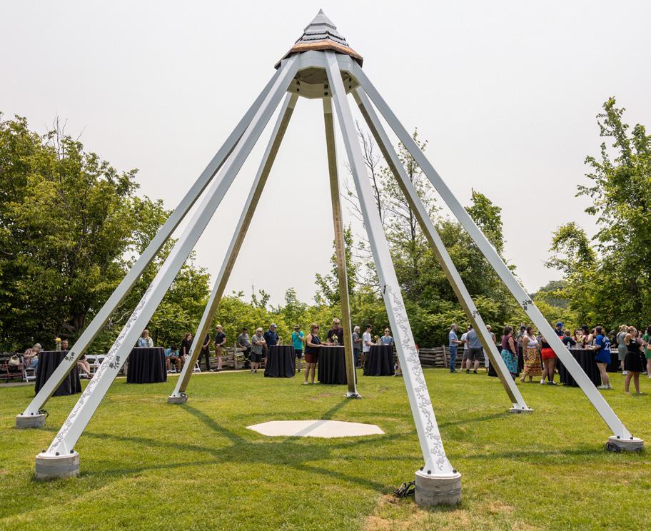 Blue Mountain: Honoring Indigenous cultures, Blue Mountain unveils Elevate | Mbin’ge, a thoughtful sculpture by Anishinaabe artist Kathryn Corbiere. Symbolizing a teepee, its seven pillars embody Anishinaabe teachings and values like love and bravery.