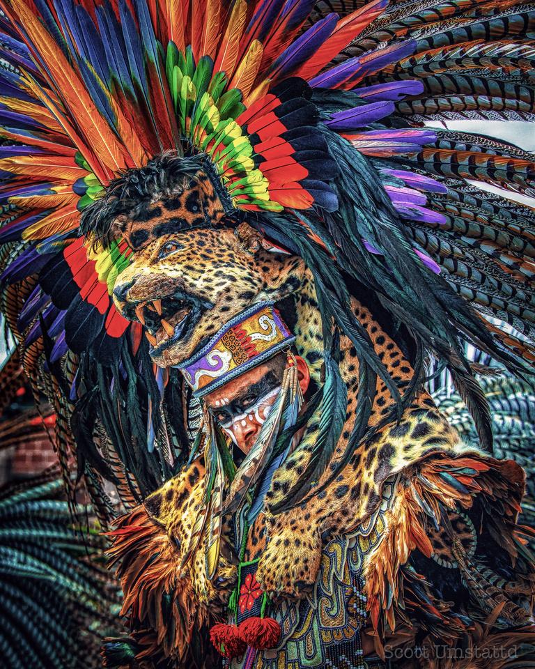 A pesar de haber estudiado Arte en la universidad y de haber soportado los retos de las clases de dibujo y pintura, me esfuerzo por infundir a mis fotos las cualidades de las Bellas Artes. Esto resulta especialmente difícil en un entorno en el que carezco de control sobre los sujetos y la iluminación, agravado por el constante movimiento de los bailarines. Esta es una breve descripción del proyecto: "Un buen baile: El Señor de las Maravillas" explora la resistencia y la colaboración en la cultura de la danza azteca contemporánea. En lugar de insistir en los agravios, el proyecto muestra la cultura de la danza como un testimonio de superación de los retos mediante la decisión consciente de trabajar por la paz. Para mí, esta buena danza tiene dentro la capacidad de iniciar la alegría y la paz desde dentro, independientemente de los retos externos. Encontrar la alegría y la paz internas es crucial para abordar los problemas externos. La verdadera transformación comienza con la aceptación interna del ofrecimiento constante de paz y alegría por parte de un poder superior. Al centrarnos en los elementos positivos de nuestro interior, los problemas se disipan, lo que hace que la luz que llevamos dentro disipe la oscuridad y guíe nuestro camino hacia la alegría. "Un buen baile: El Señor de las Maravillas" no es una llamada al cambio, sino una amplificación de la cultura de la danza azteca. Sirve de sermón visual, animando a todos a abrazar su luz interior y fomentando el reconocimiento de la positividad. A través de esta celebración de la alegría, el proyecto ofrece un camino hacia la iluminación interior, irradiando el poder transformador de la buena danza.