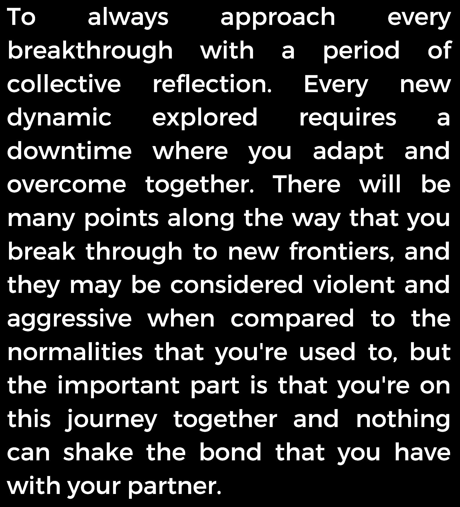 Don’t go into any experience, event, date, etc with any expectations. Don’t expect “something to happen” or put pressure on yourself, your partner, or the other party to “make something happen.” You should have fun with your partner and new/potential new friends just as that, enjoy each other’s company and time together first without expecting any play. If your time together happens to move to sexy play, then that’s awesome, but if it’s going to happen, it will; don’t expect it to.